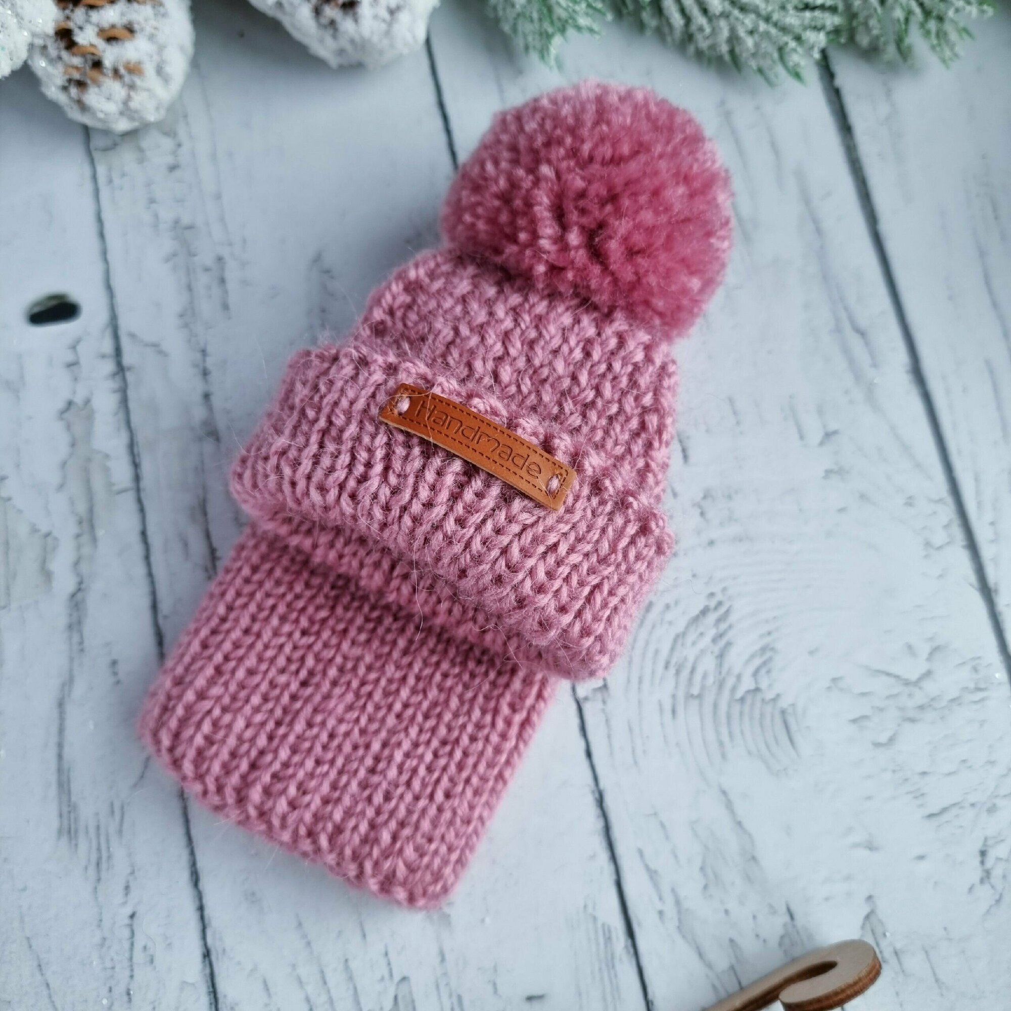 Вязаная шапка для животных с открытыми ушками, пыльная роза, M информация: