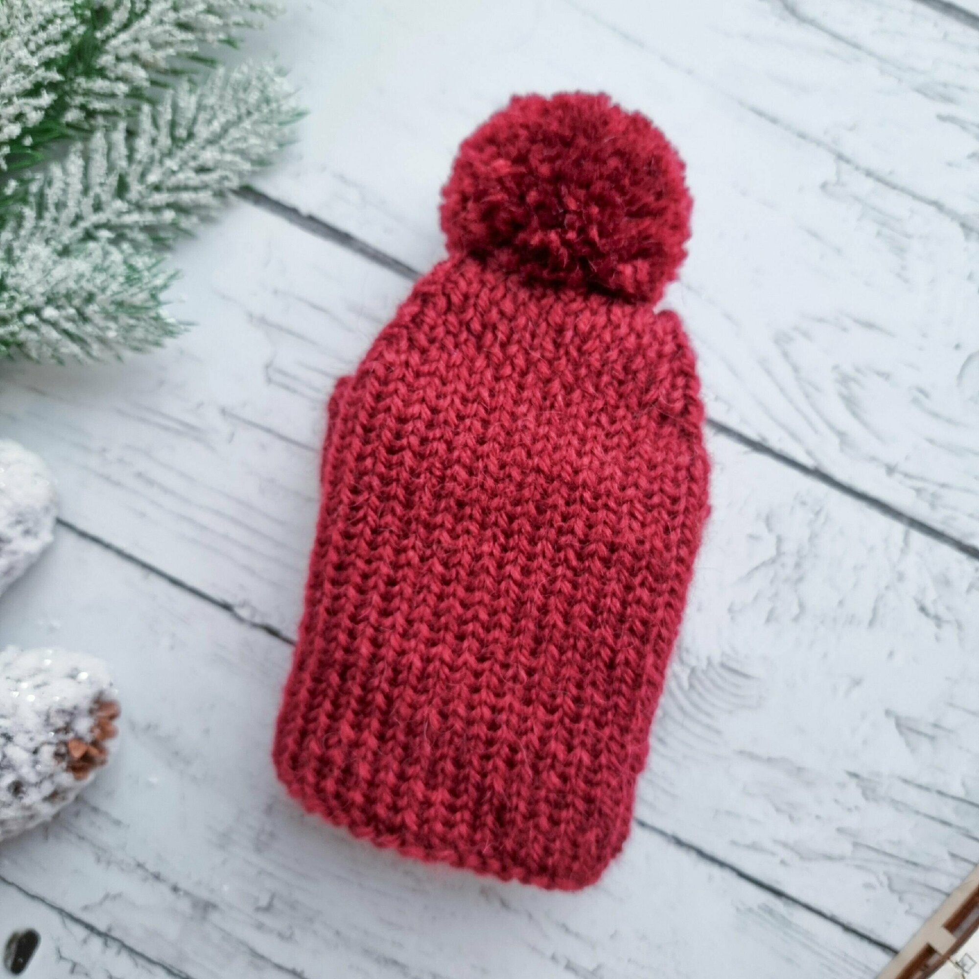 Вязаная шапка для животных с открытыми ушками, бордовый, S информация: