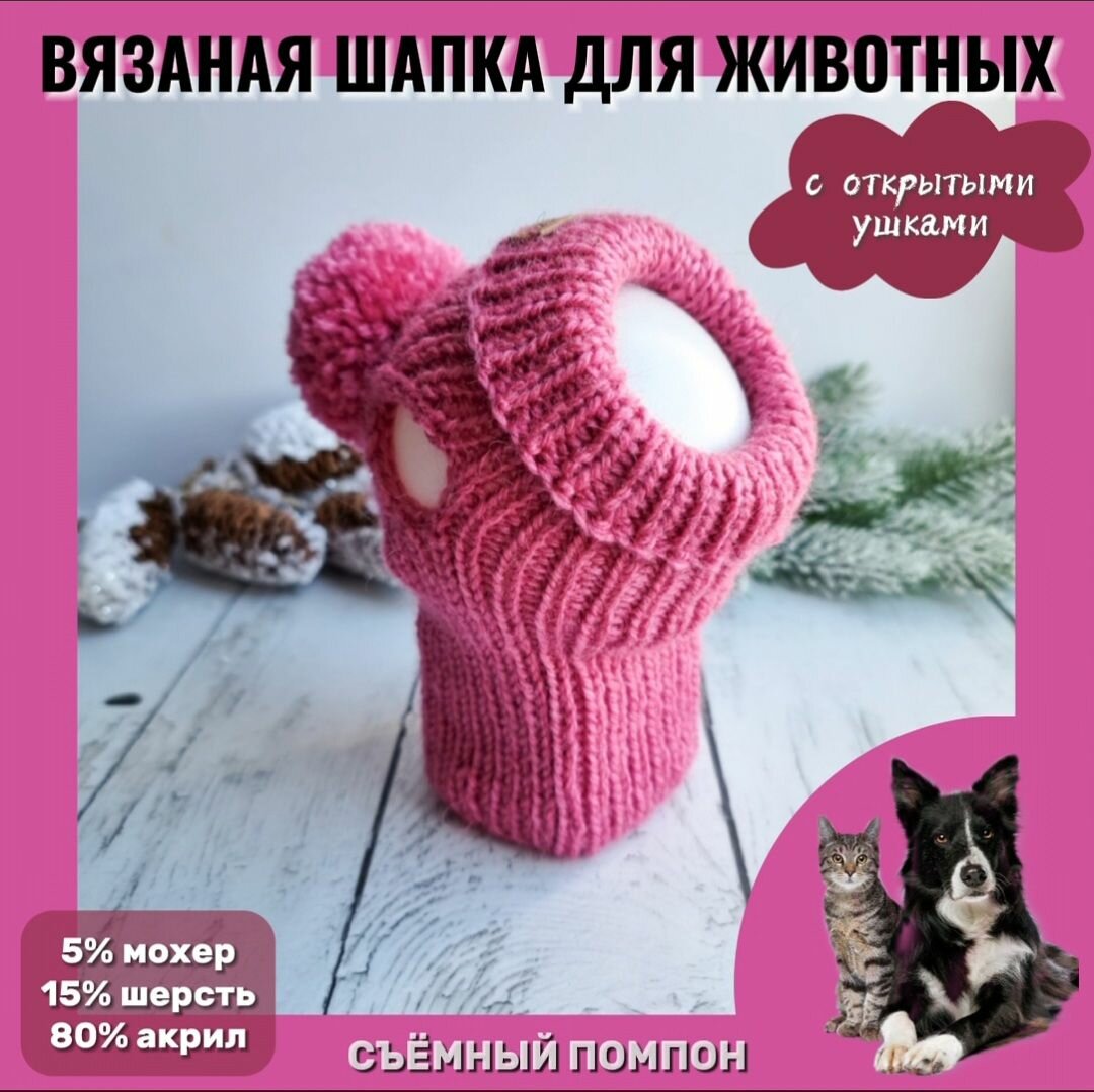 Вязаная шапка для животных с открытыми ушками, пыльная фуксия, S информация:
