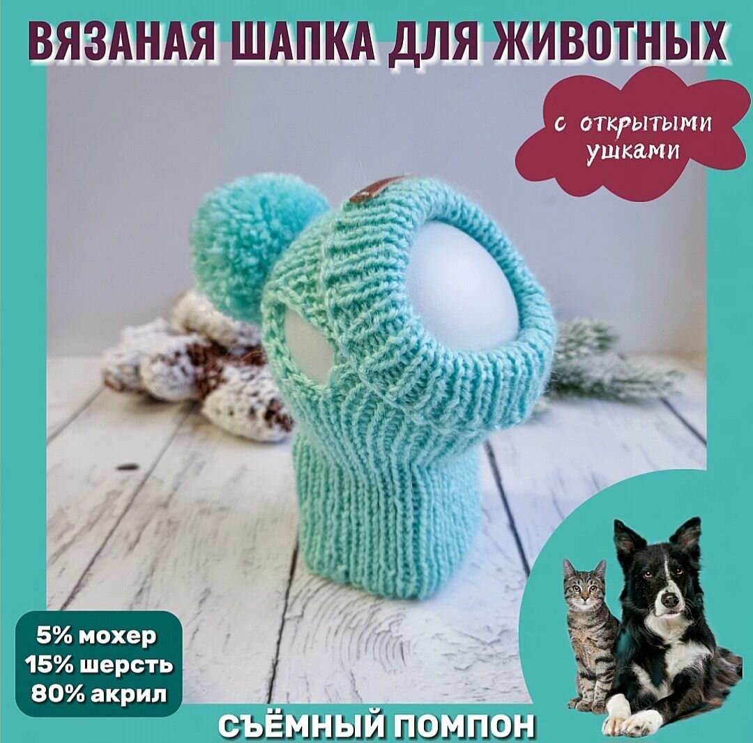 Вязаная шапка для животных с открытыми ушками, тиффани, M информация:
