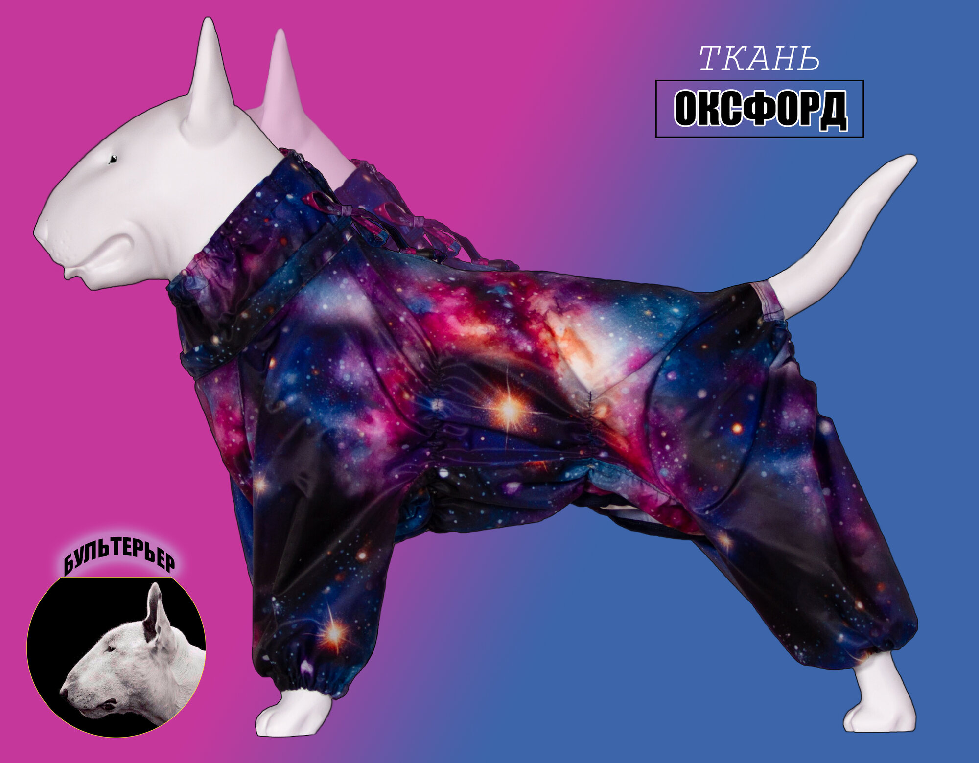 Комбинезон-дождевик для бультерьера кобеля, повышенной прочности, дизайнерский принт, цвет галактика информация: