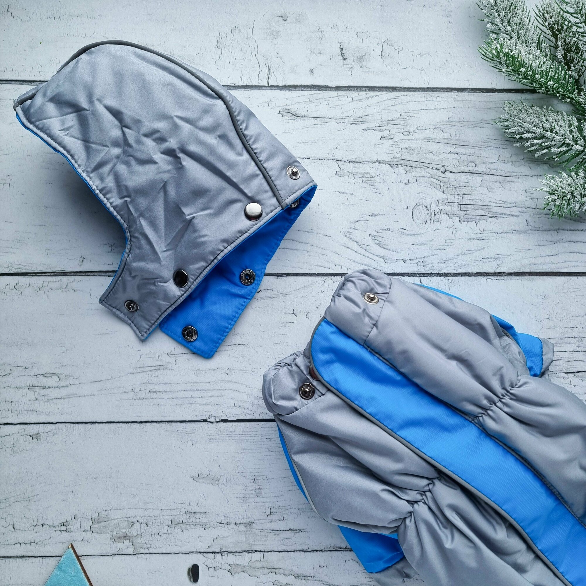 Комбинезон зимний/демисезон "ZOO" со съемным капюшоном для такс, пекинесов, ши-тцу, серый/голубой, ТМ-1 информация: