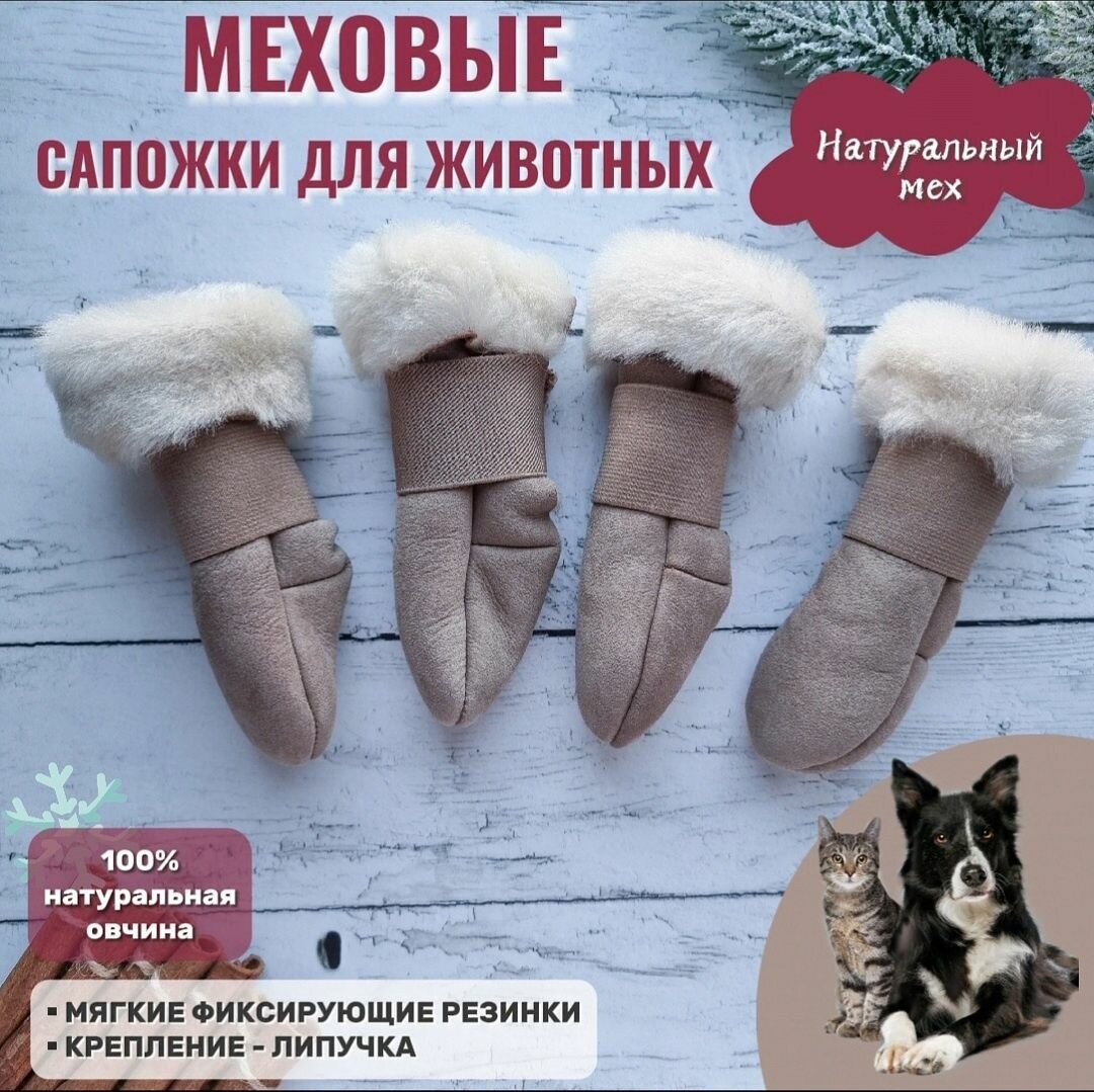 Зимние сапожки из натурального меха для собак мелких пород/кошек, р-р4, бежевый информация:
