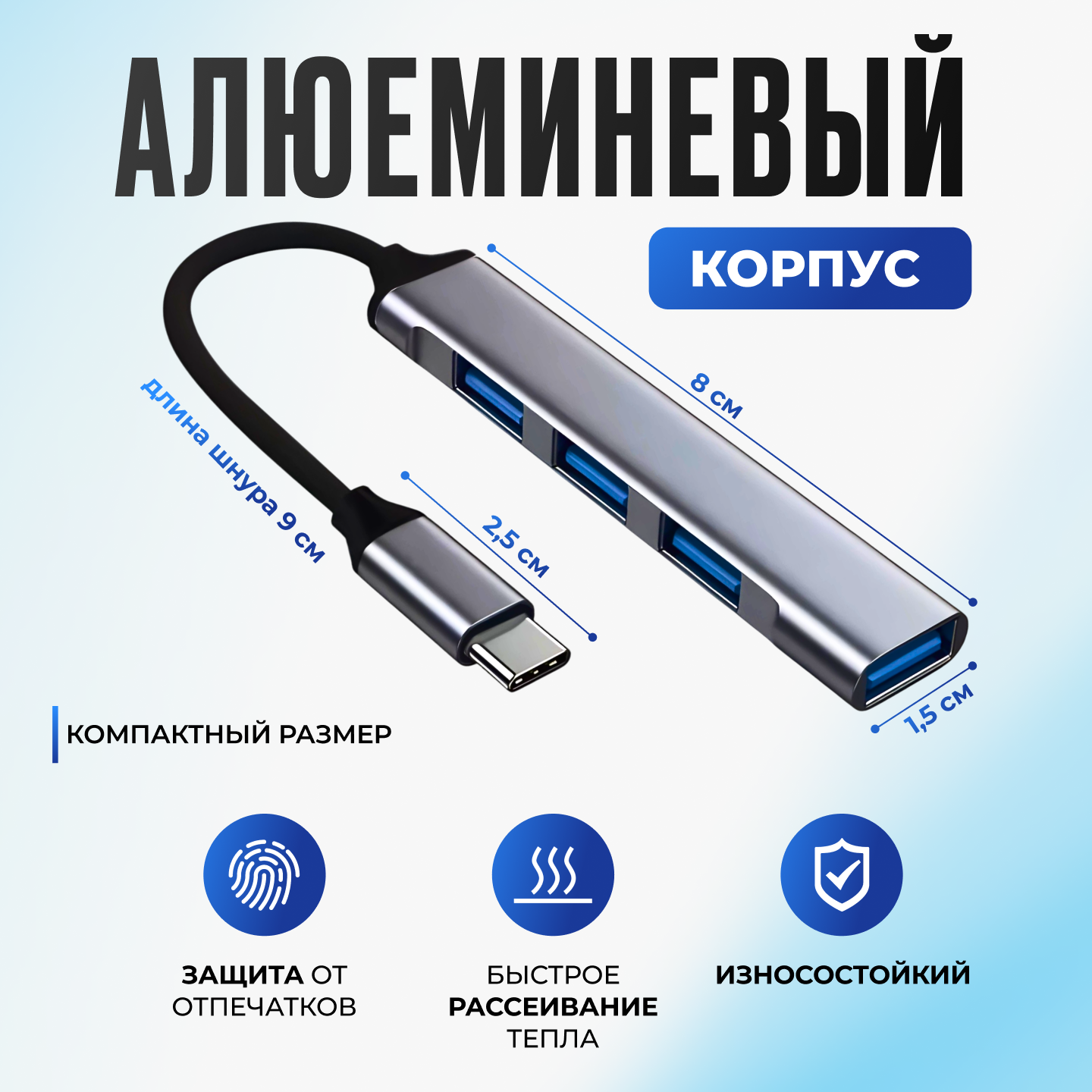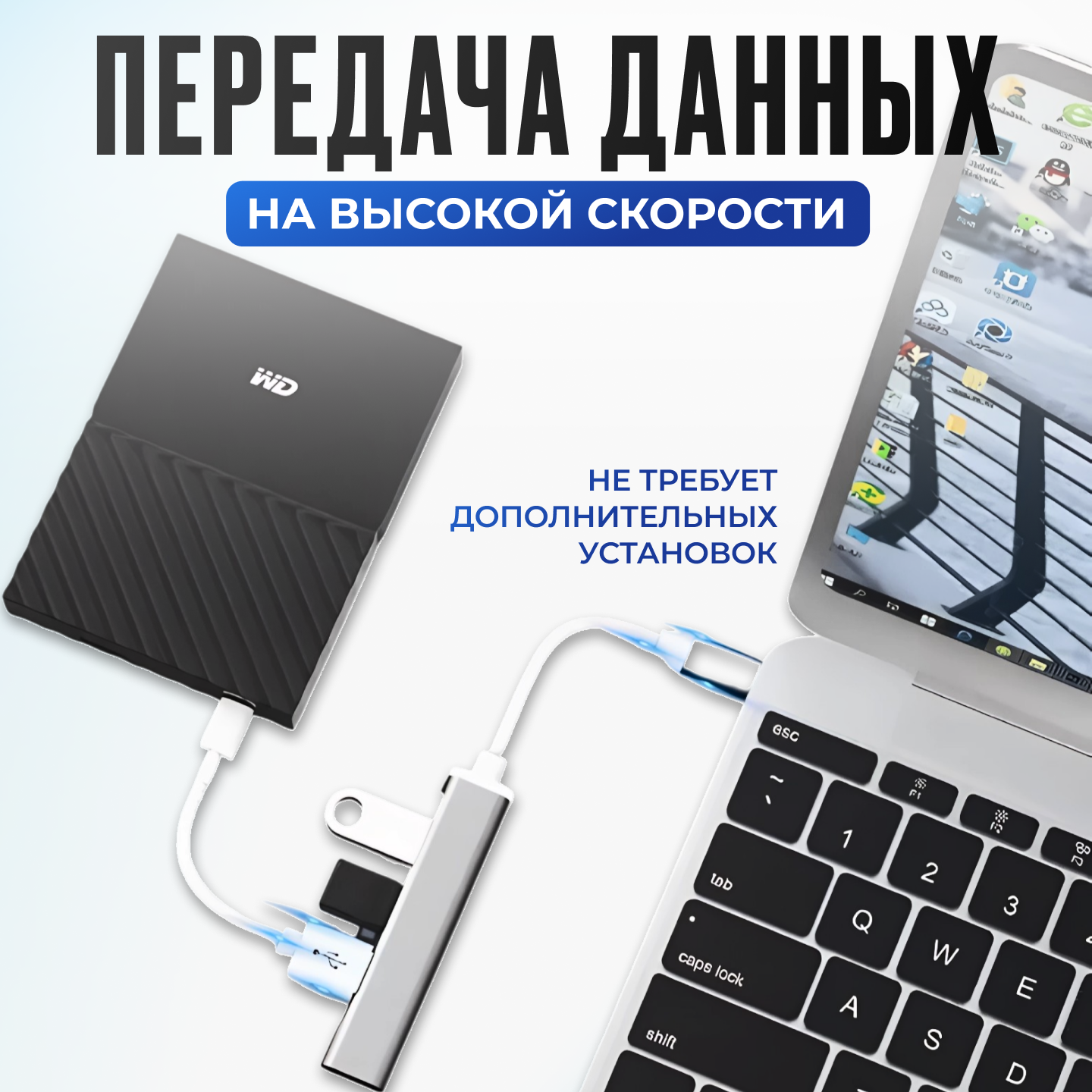 USB Hub 3.0 на 4 порта, Type-C концентратор, разветвитель юсб хаб для ноутбука, провод Type-C информация: