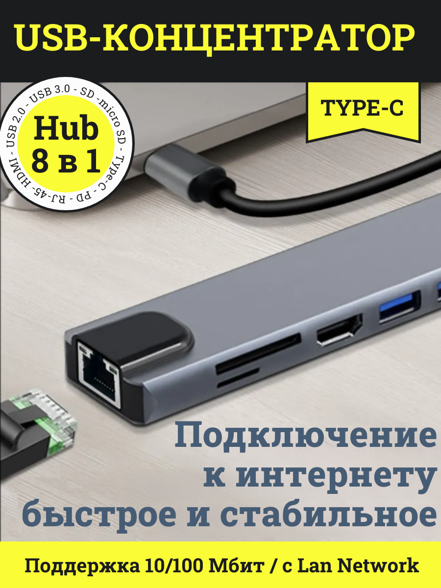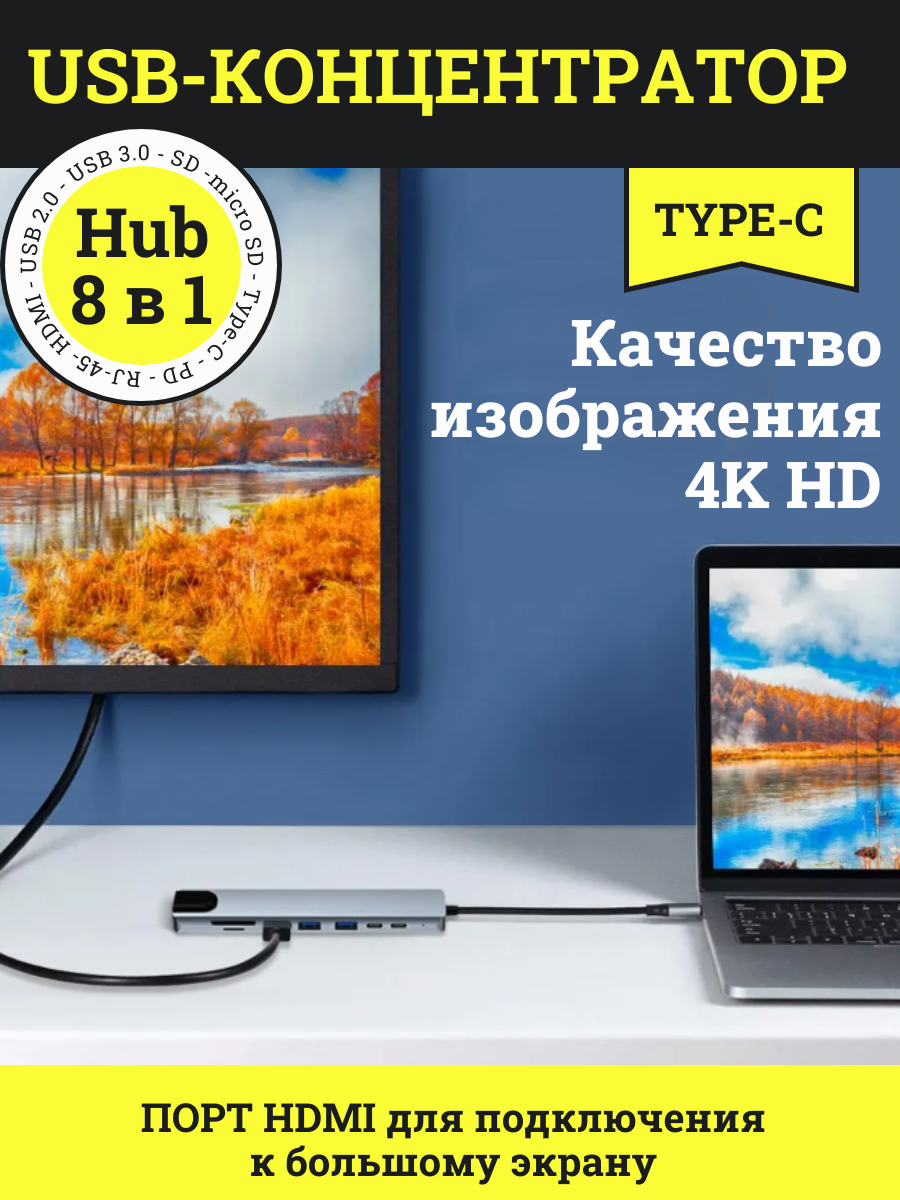 10 цен на Хаб / USB-концентратор с Type-C HDMI | RJ-45 | 2xUSB 3.0 | 2xType-C | SD | TF | PD