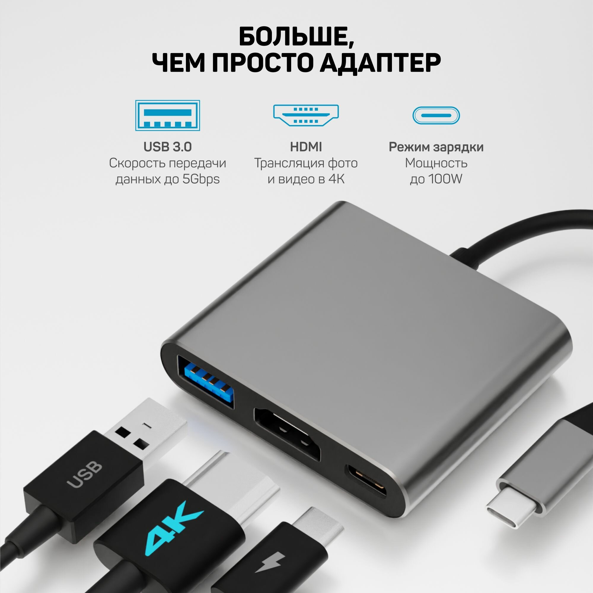 USB Type-C хаб с OTG, разветвитель, докстанция, HDMI 4К, концентратор универсальный с дополнительным питанием 100W информация:
