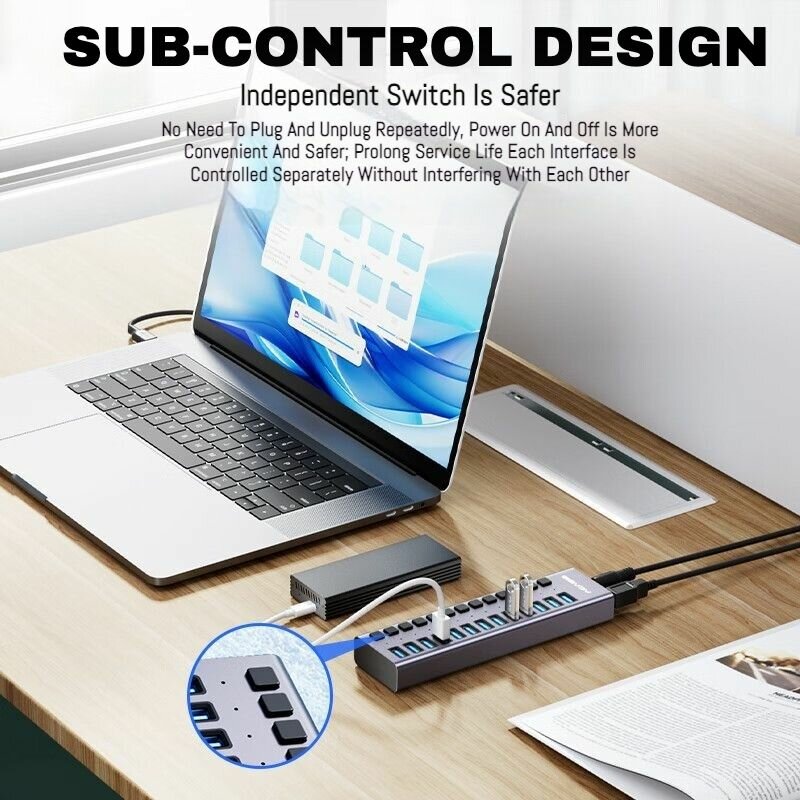 10 цен на 13-портовый USB-концентратор Acasis, USB-разветвитель USB 3.0, 5 Гбит/с для ноутбука