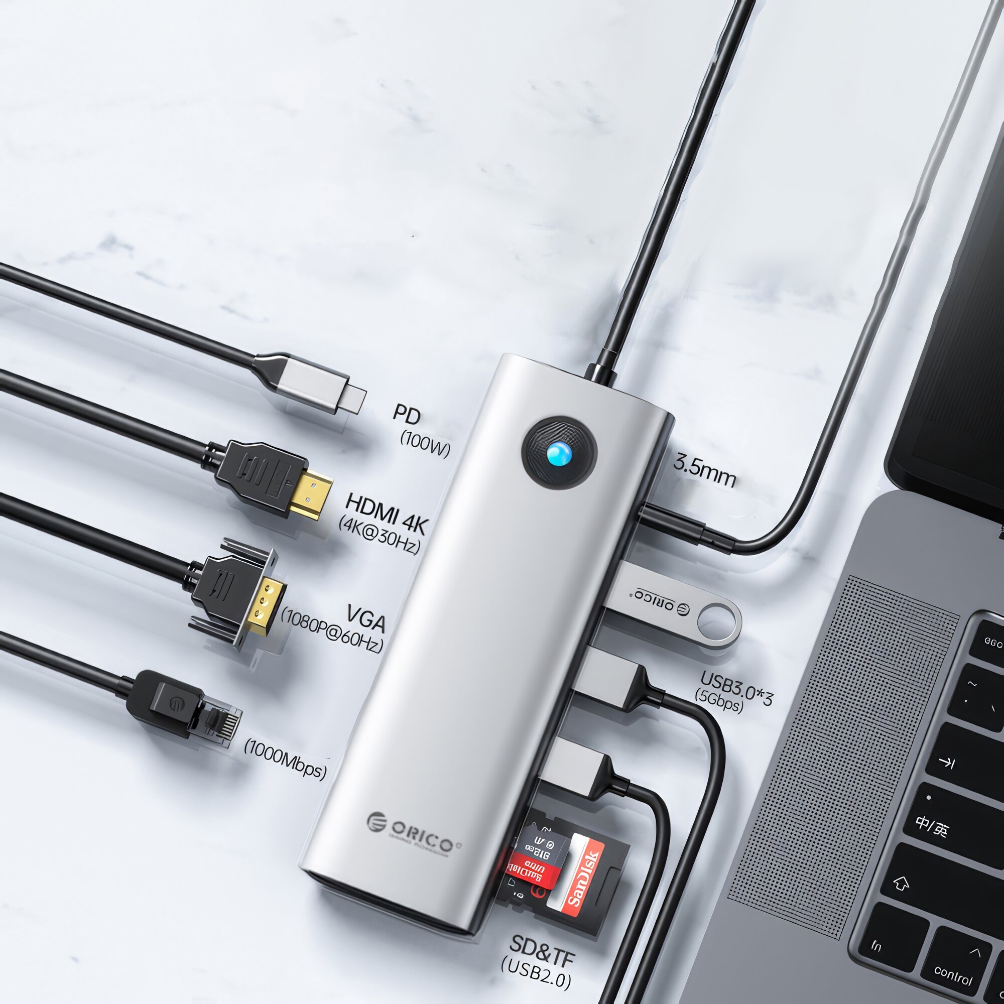 10 цен на USB-хаб концентратор ORICO PW11-10P на 10 портов USB 3.0*3 серебристый