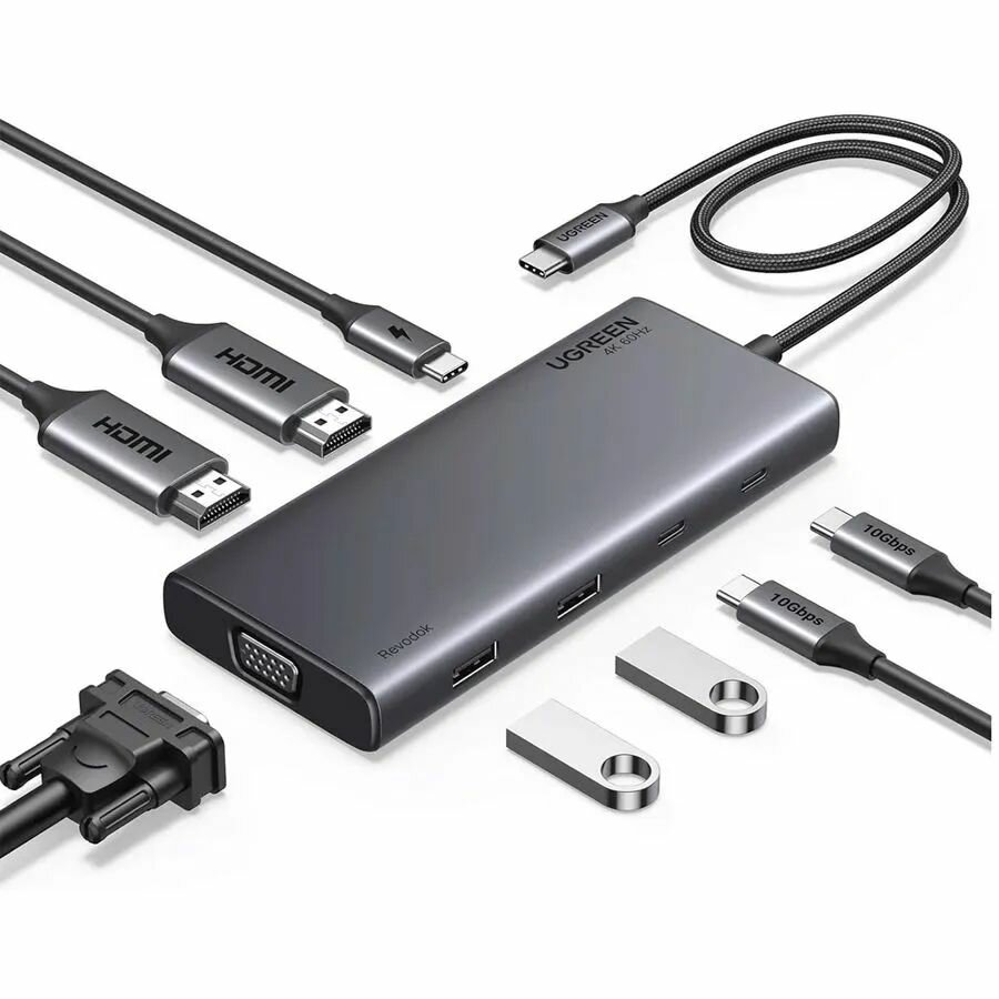 10 цен на Адаптер UGREEN CM639 (35588) Revodok 8-in-1 4K@60Hz 2*HDMI & VGA & 2*USB-C & 2*USB-A & PD Adapter. Цвет: серый