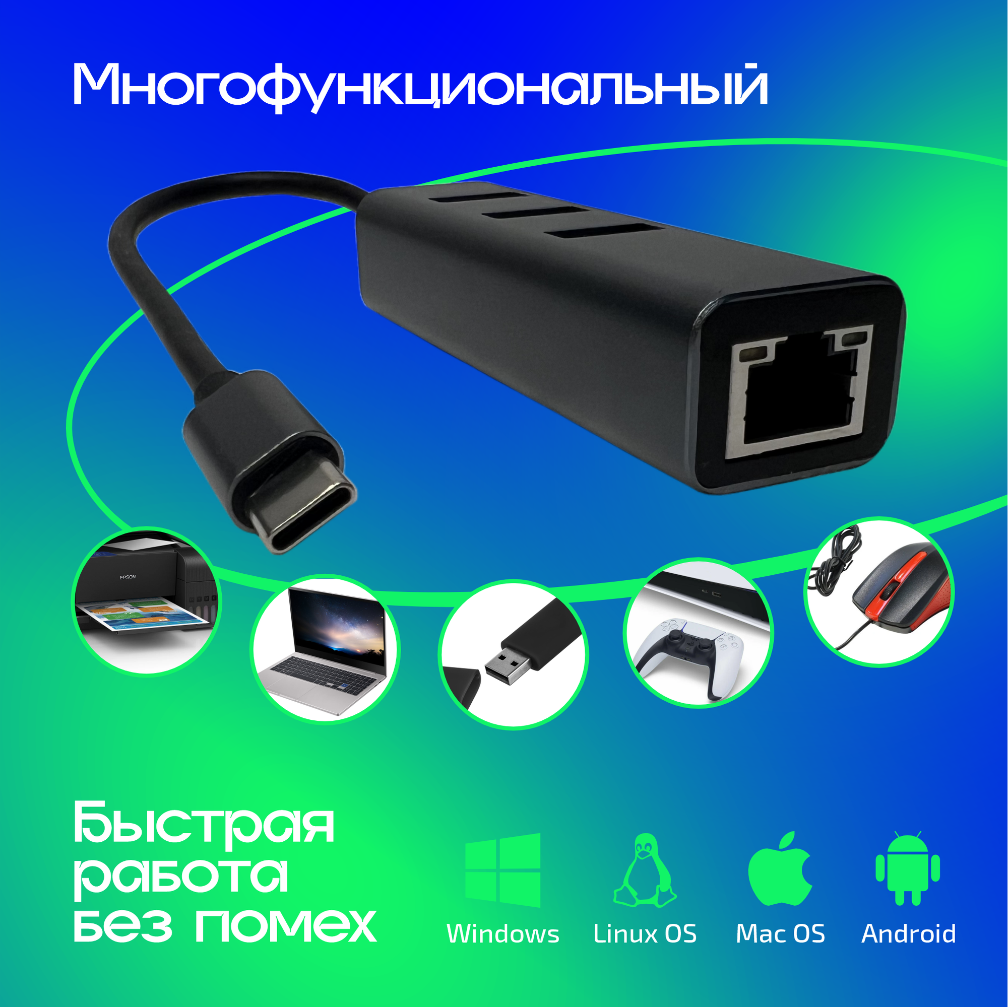 Отзывы на USB-хаб 4 в 1 Type-с, 3 USB 3.0, 1 RJ45, для подключения через USB Type-C