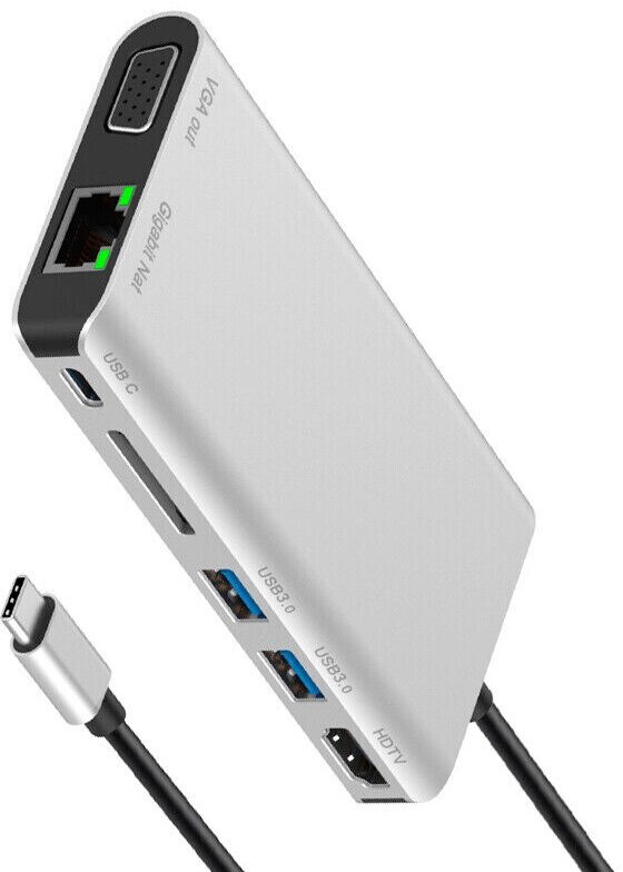 Отзывы на USB Type-C хаб Onten на 8 портов HDMI , Ethernet RJ45 , VGA , 2xUSB 3.0 , SD , AUX , Type-C PD - Серый