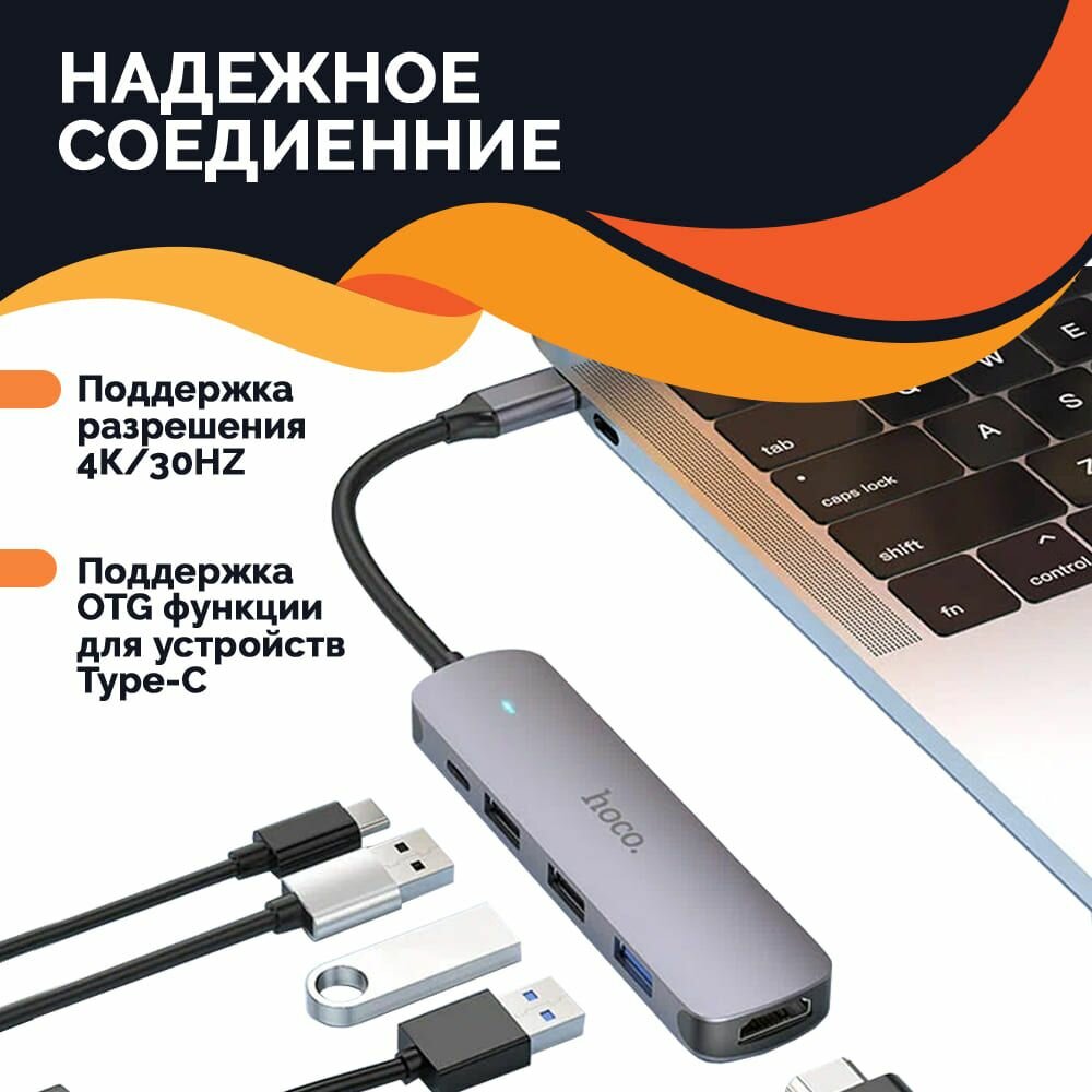 10 цен на Адаптер-переходник Hoco HB27, USB Type-C 100W, USB Хаб разветвитель 5 в 1