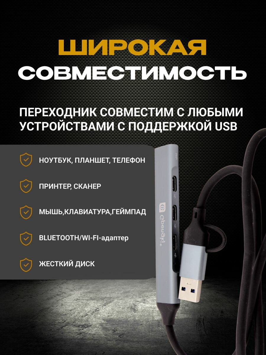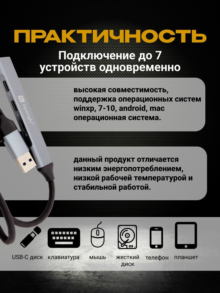 USB-хаб USB3.0/Type-C на 4 Type-C GP-Y504 информация: