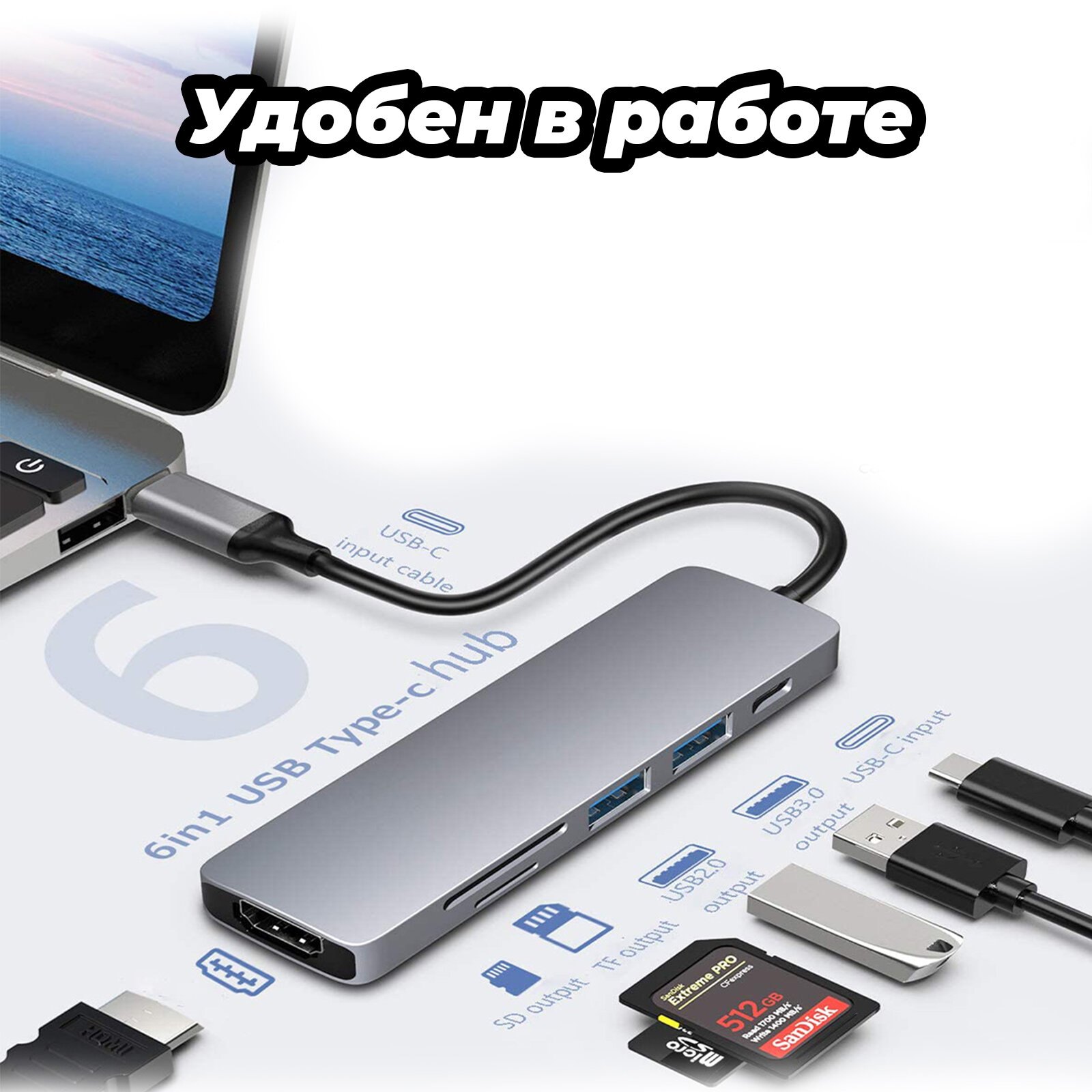 Отзывы на USB разветвитель адаптер 6 в 1 USB HUB HDMI Type C док станция Usb 3.0 хаб 3 0 переходник концентратор адаптер TF SD картридер для ноутбука для макбука hdmi USB-2.0 Type-c. USB 3.0