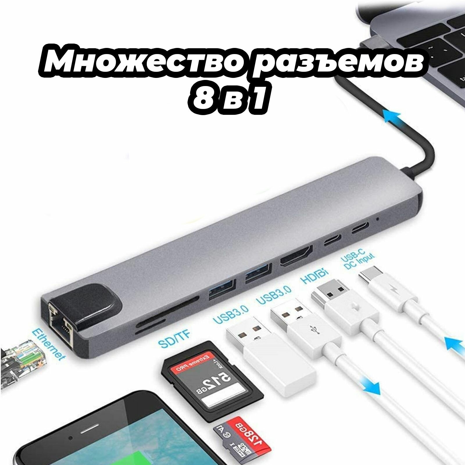 USB разветвитель 8 в 1 USB HUB Type C док станция Usb 3.0 хаб 3 0 переходник концентратор адаптер thunderbolt 4k Hdmi RJ45 TF SD картридер для ноутбука для макбука USB-2.0 Type-c информация: