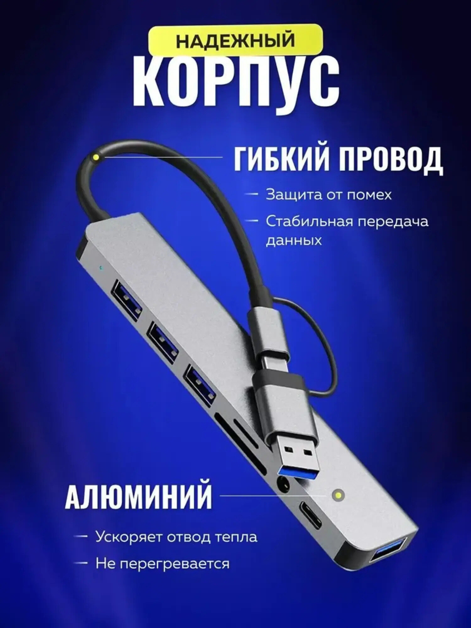 Отзывы на Разветвитель USB 8в1/USB концентратор 8в1/USB HUB/Type C/Док-станция, HDMi, картридер/USB 3.0 , USB 2.0/Переходник USB