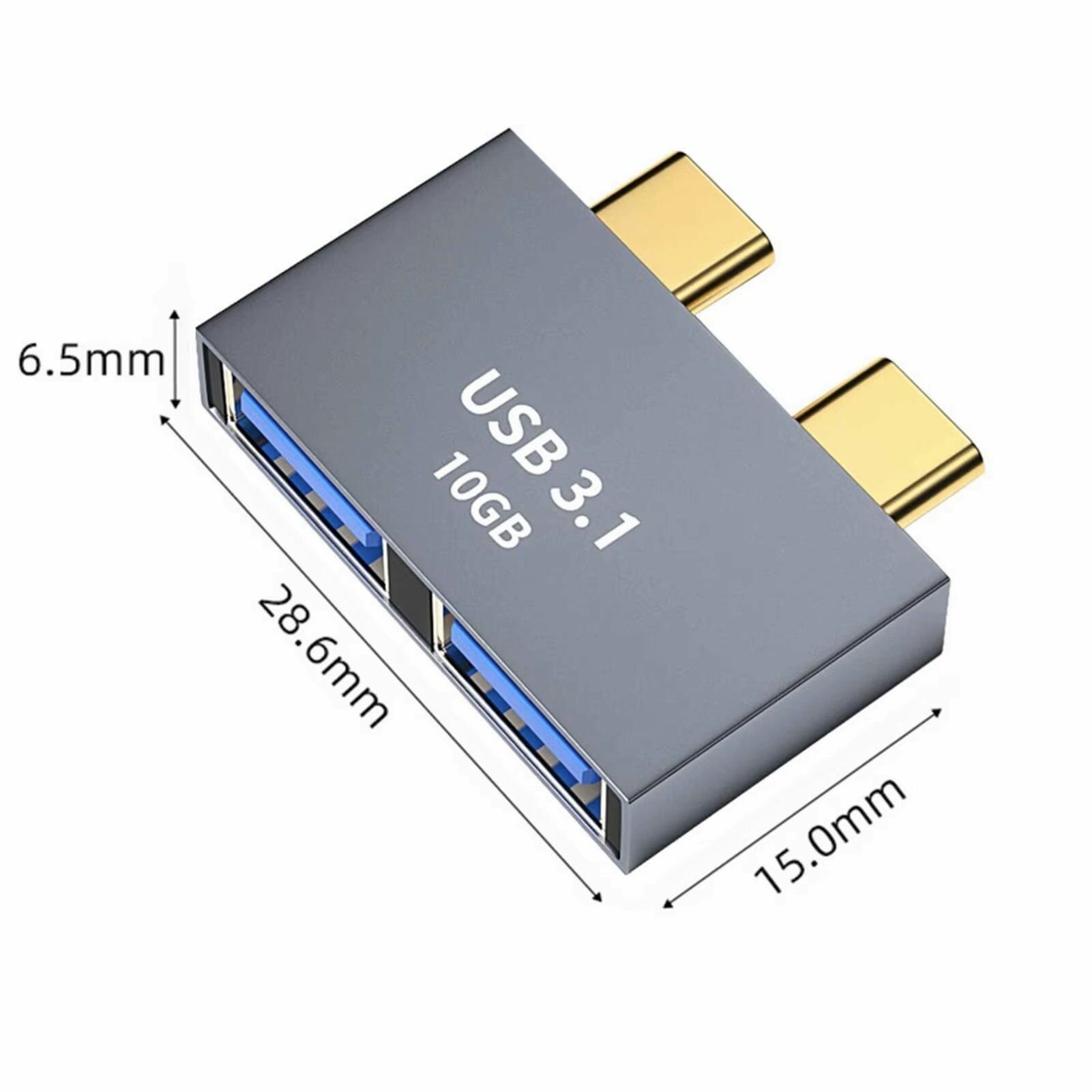 10 цен на Разветвитель для зарядки и передачи файлов, с 2 USB-Typec-C на 2 USB 3.0, серебряный