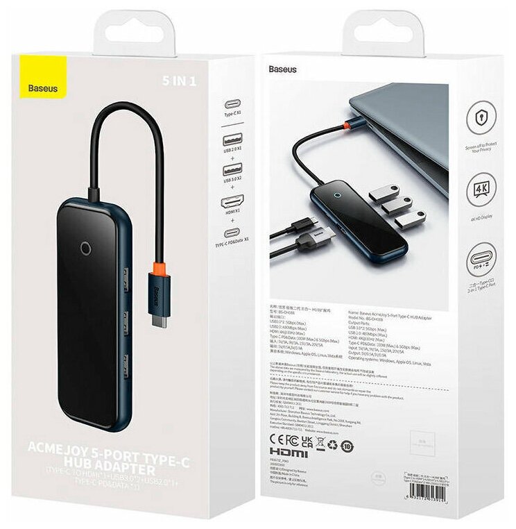 Отзывы на Хаб USB Baseus AcmeJoy 5-Port Type-C - HDMI + 2xUSB3.0 + USB2.0 Dark Grey WKJZ010213