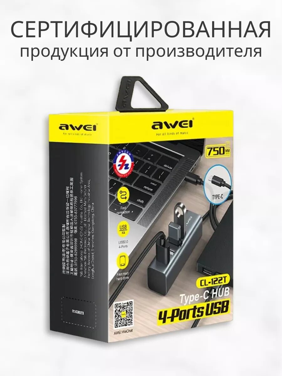 10 цен на USB-хаб AWEI CL-122T, 4 порта Type-C/USB, алюминиевый корпус, серый