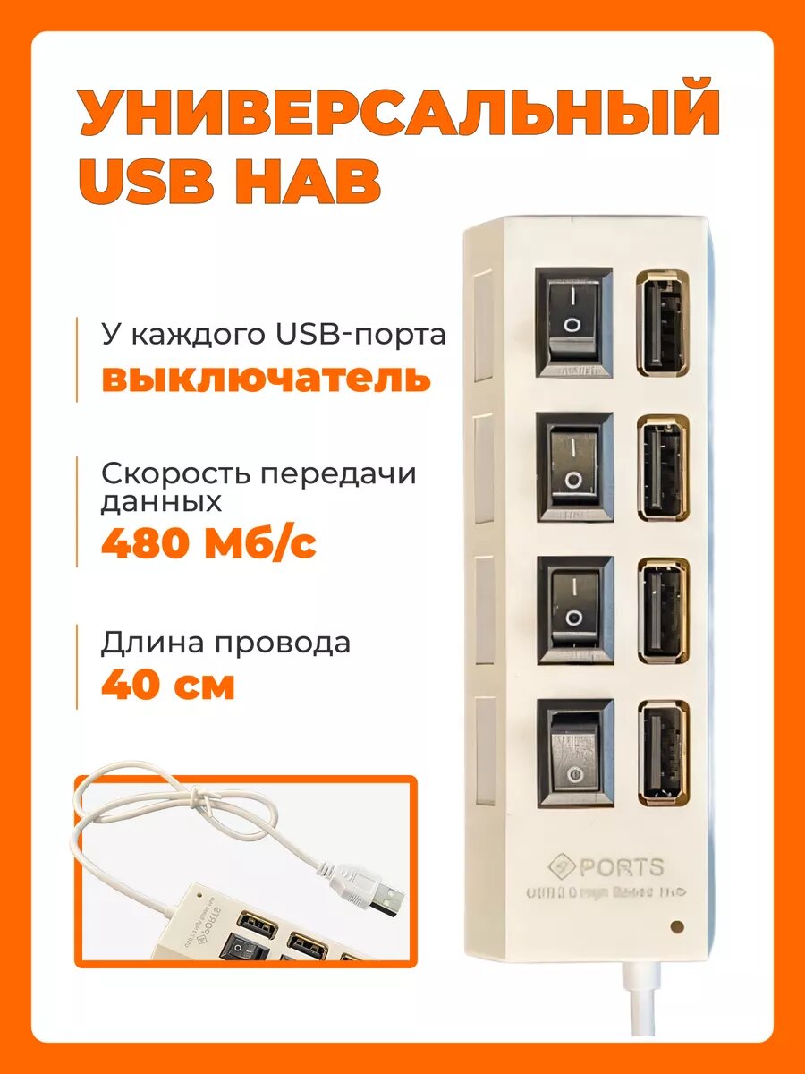 10 цен на USB Hub 2.0 с выключателями на 4 порта с кабелем 40 см