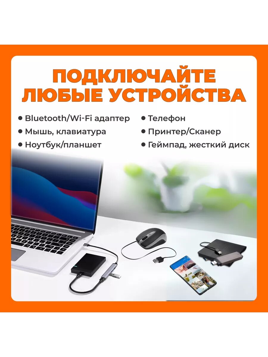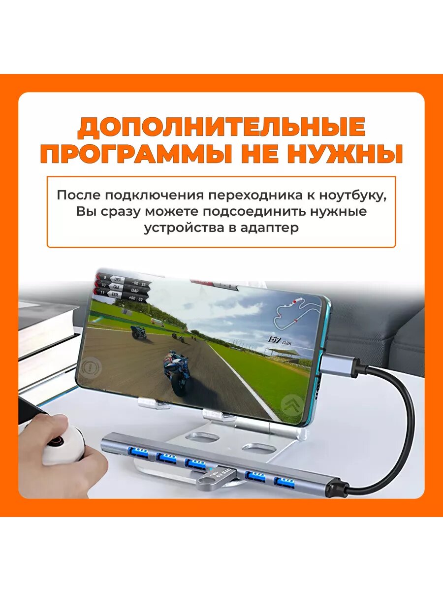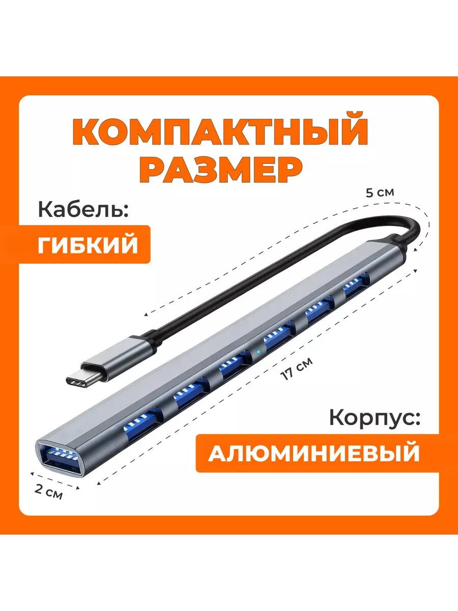 USB Hub 3.0 на 5 портов: USB, Type-C, разветвитель 770 ₽