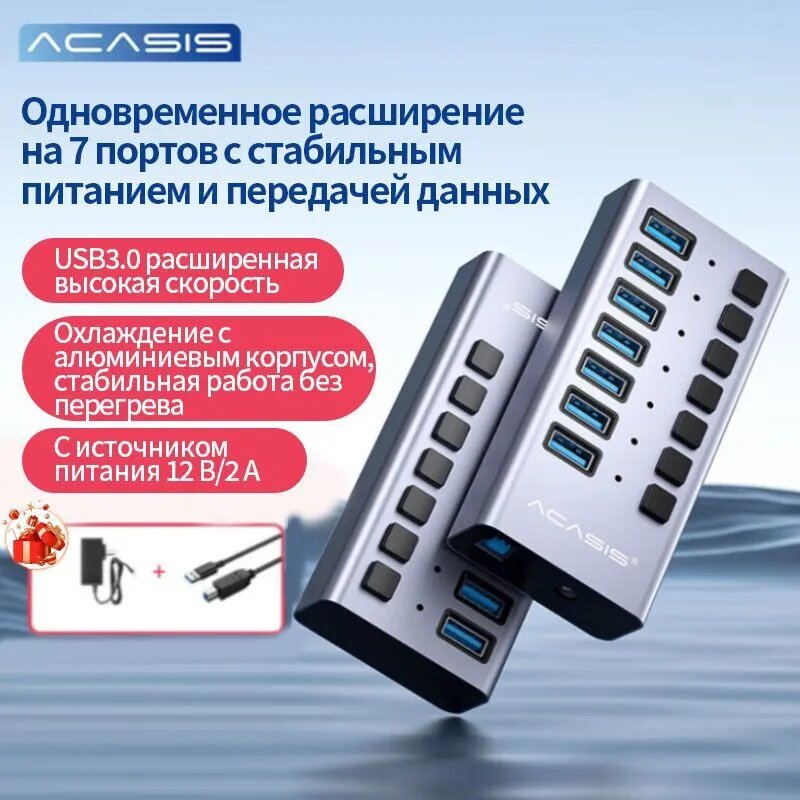 10 цен на 7-портовый USB-концентратор Acasis, USB-разветвитель USB 3.0, 5 Гбит/с для ноутбука HS-707MG