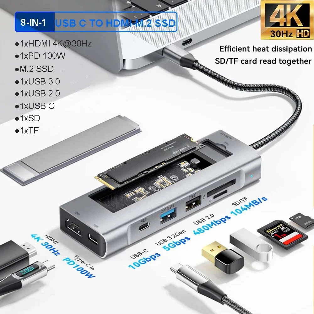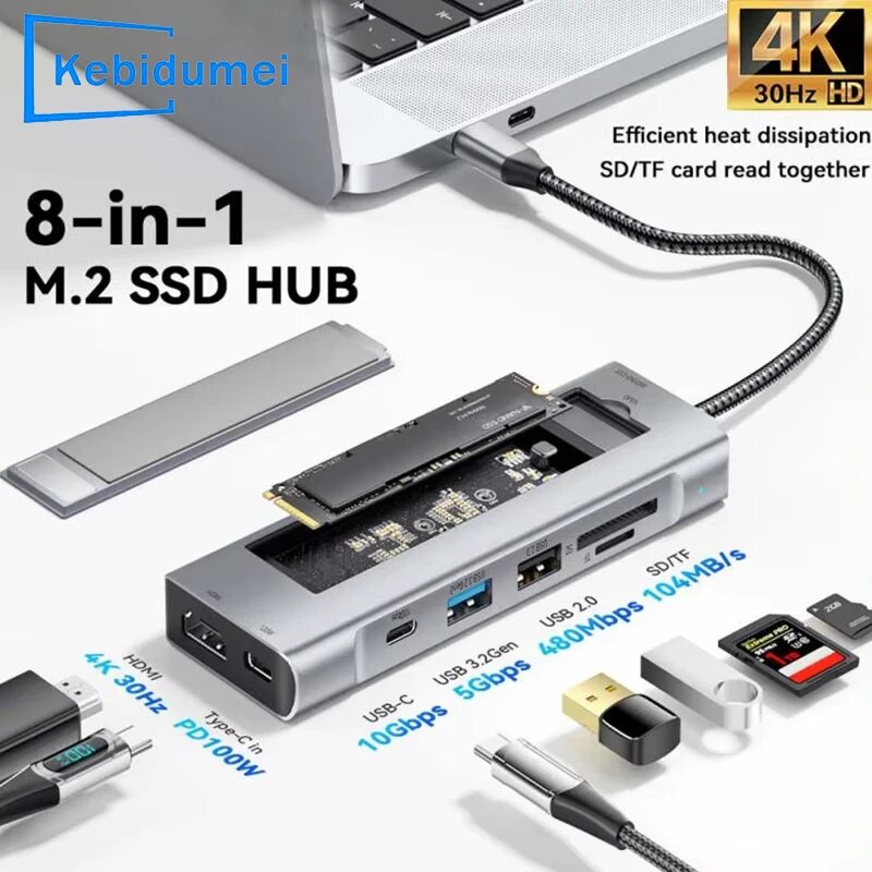 USB концентратор kebidumei 8-в-1 с хранением M.2 SSD, 8-IN-1 SATA NVMe информация:
