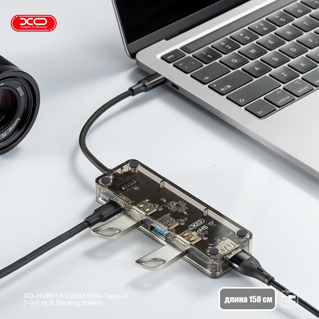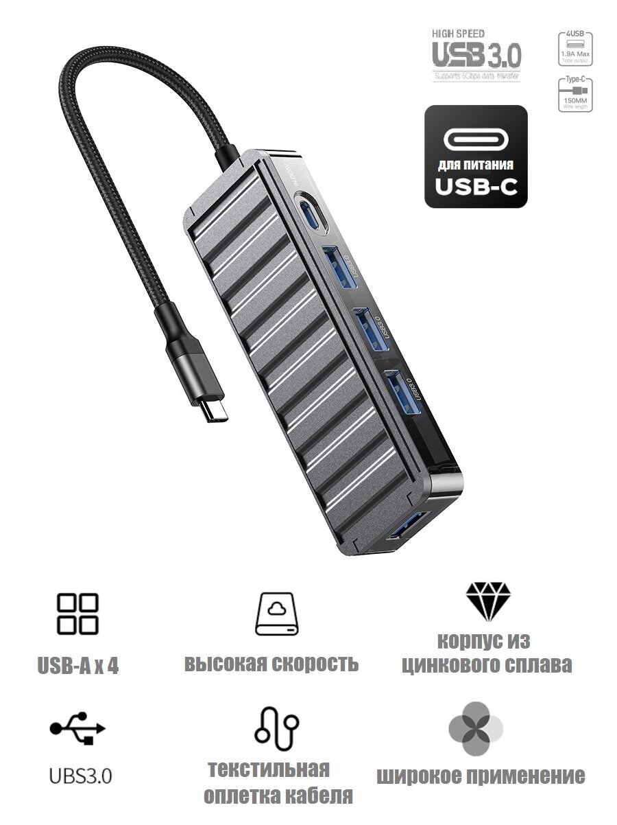 USB хаб USB-C 5в1 4 x USB 3.0, 1 x USB-C для питания информация: