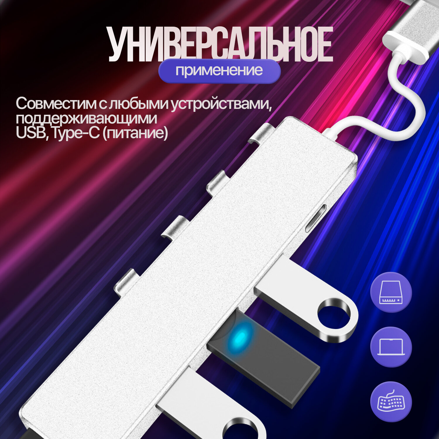 USB-концентратор, TYPE C на 4 TYPE C - разветвитель для зарядки, белый, 1 шт.