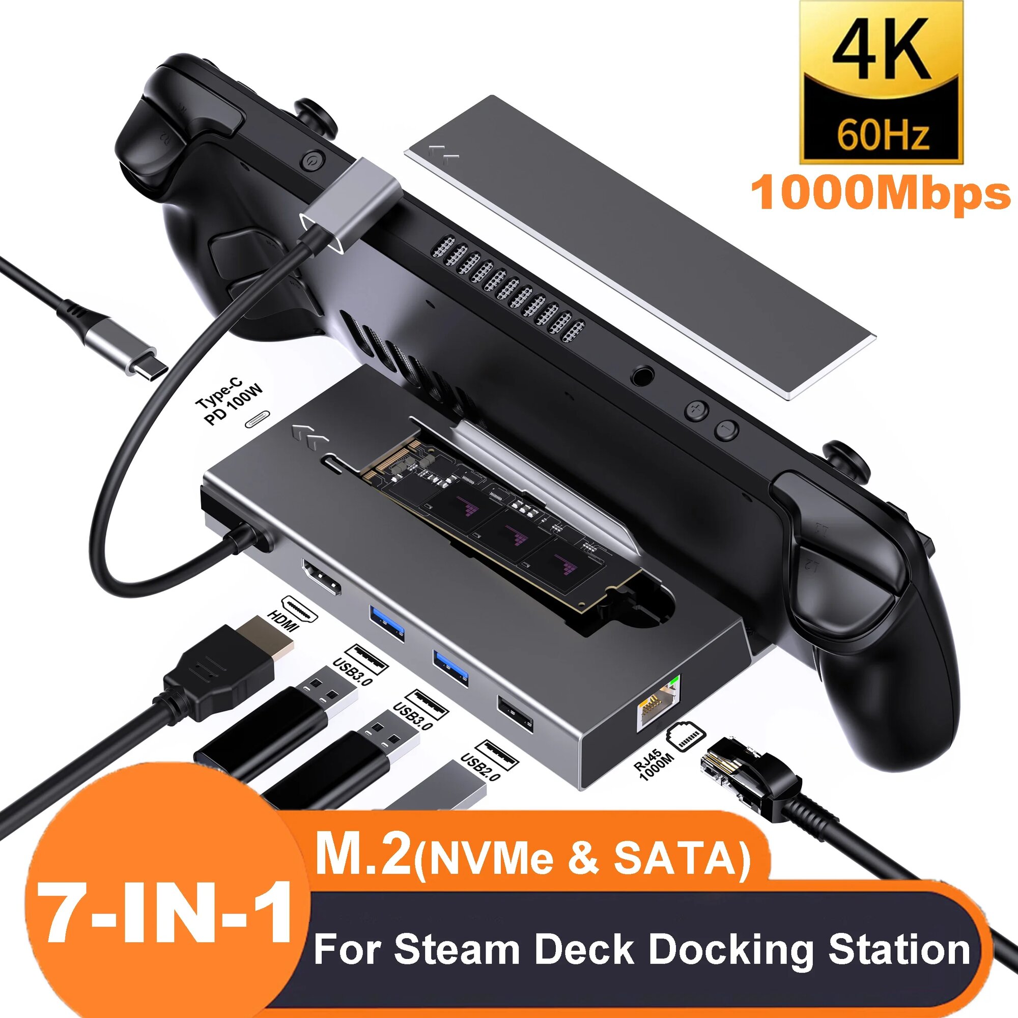 10 цен на Док-станция 7-в-1 kebidumei для Steam Deck, M.2 SSD for Steam