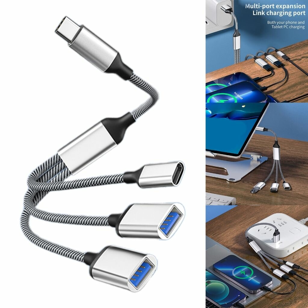Тип C 2xUSB 1xType Адаптер OTG Y-разветвительный кабель Концентратор расширения USB 2.0 Оплетка для зарядки данных информация: