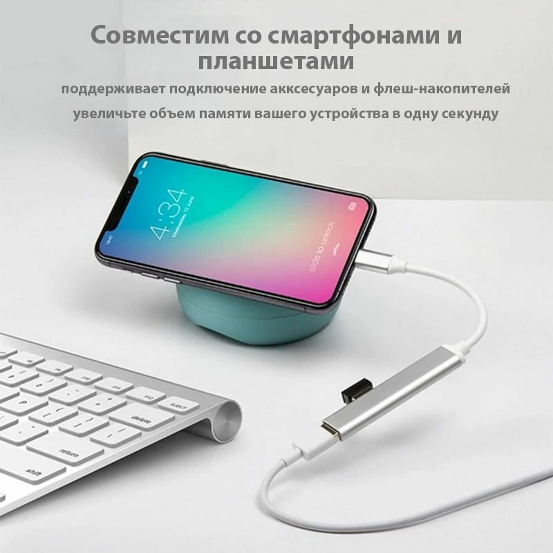 USB hub 3.0 / USB разветвитель на 4 порта / переходник type c на usb / серый металлик информация: