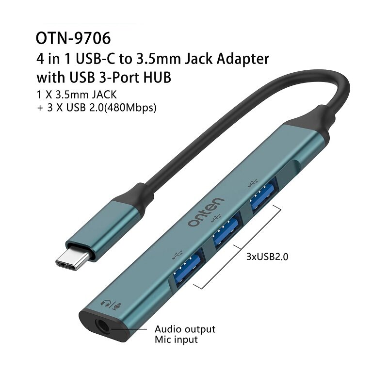 10 цен на Разветвитель Onten OTN-9706, USB Type-C, 5 разъемов, длина кабеля 9 см, зеленый