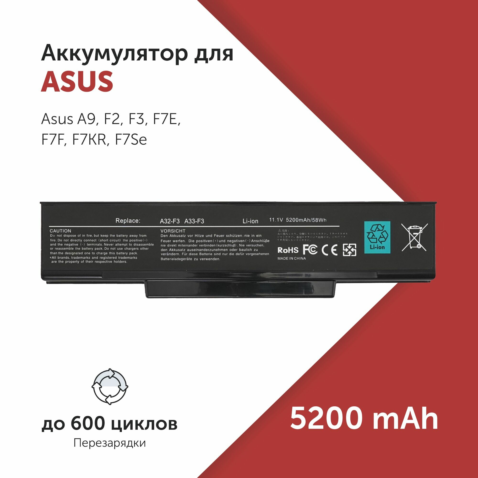 Отзывы на Аккумулятор A32-F3 для ноутбука Asus A9 / F3 / F7Z / M1200 / M51 / PRO31 (A32-F2, A33-F3, BAT-F3)