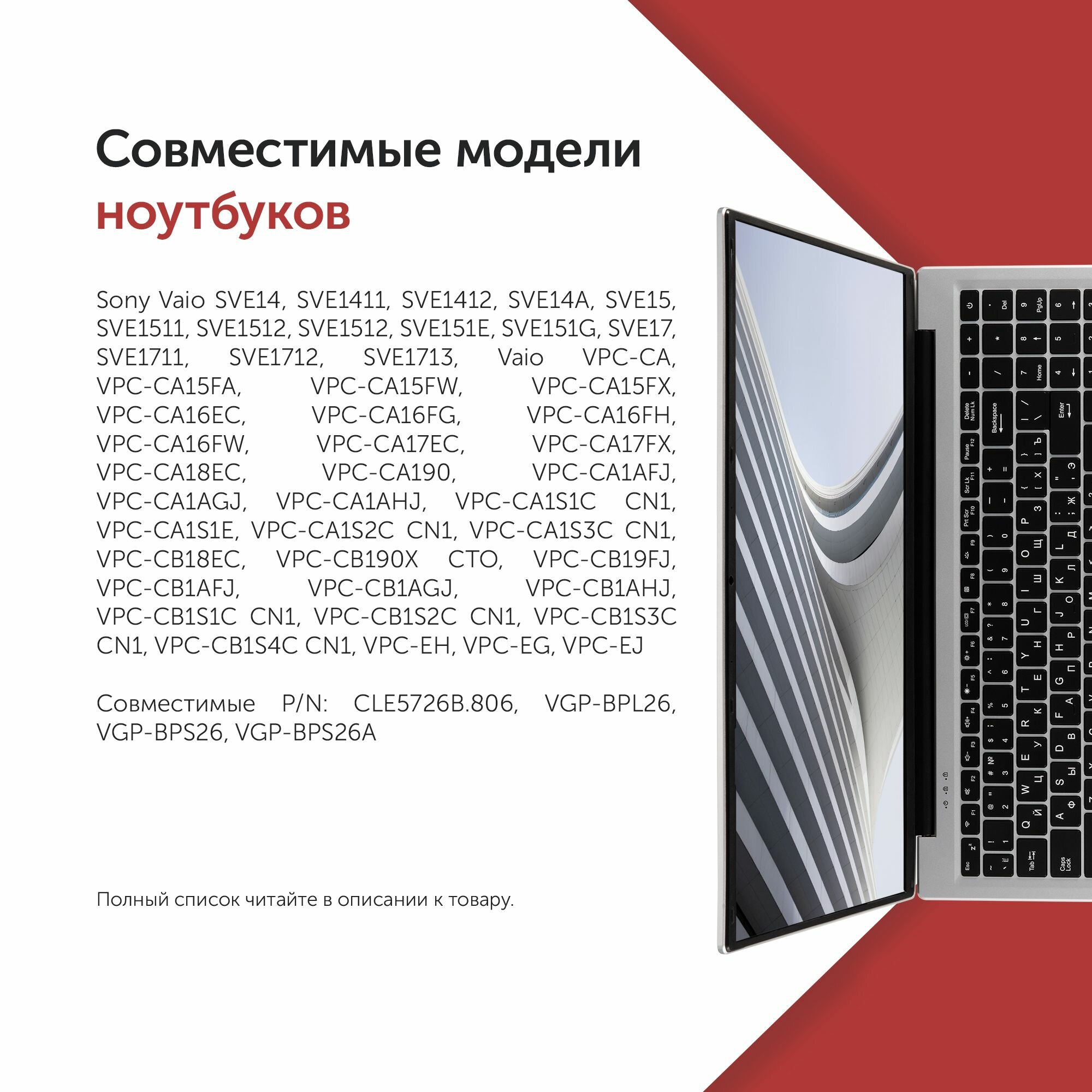 Аккумулятор VGP-BPS26 для ноутбука Sony Vaio SVE14 / SVE15 / SVE17 / VPC-CA / VPC-CB / VPC-EG / VPC-EH / VPC-EJ (VGP-BPL26) 5200 мА·ч информация: