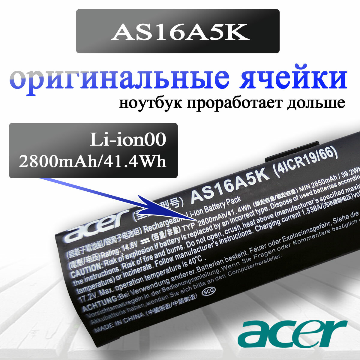 Аккумулятор батарея AS16A5K для ноутбука Acer 2800mAh 14.8V E5-576T P259-M AS16A7K orig информация: