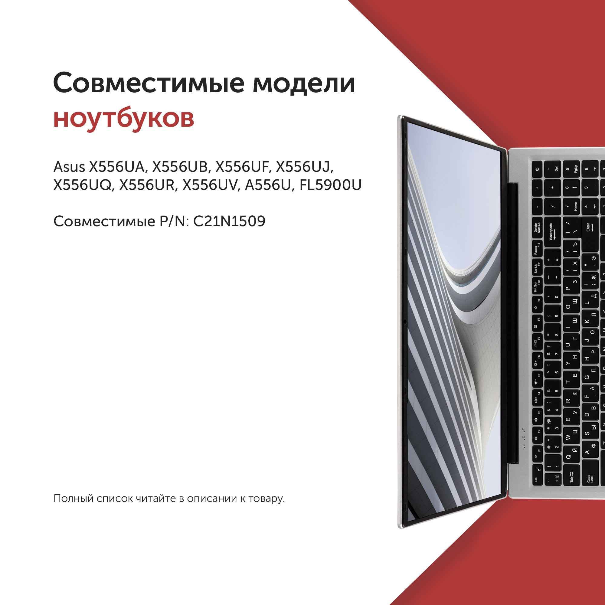 Аккумулятор C21N1509 для ноутбука Asus X556UA / X556UB / X556UR / X556UV / A556U / FL5900U информация: