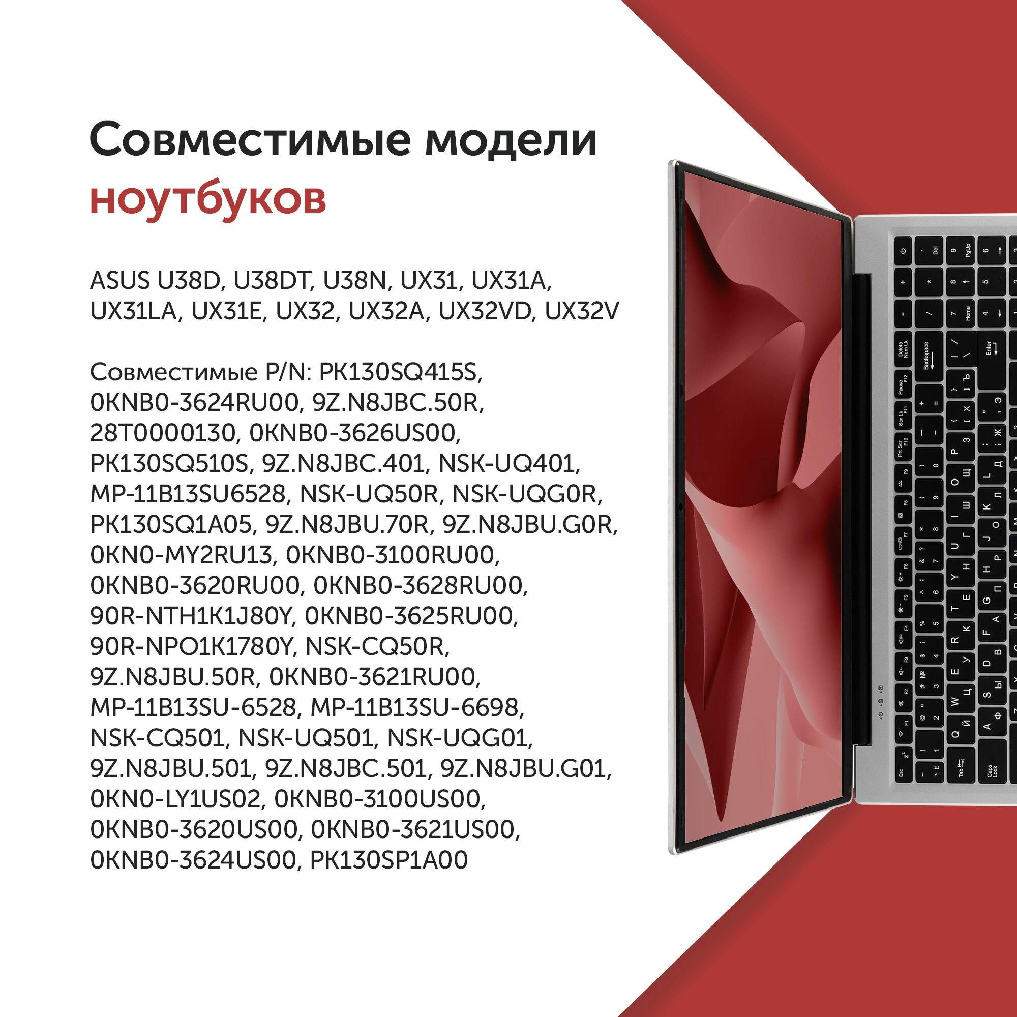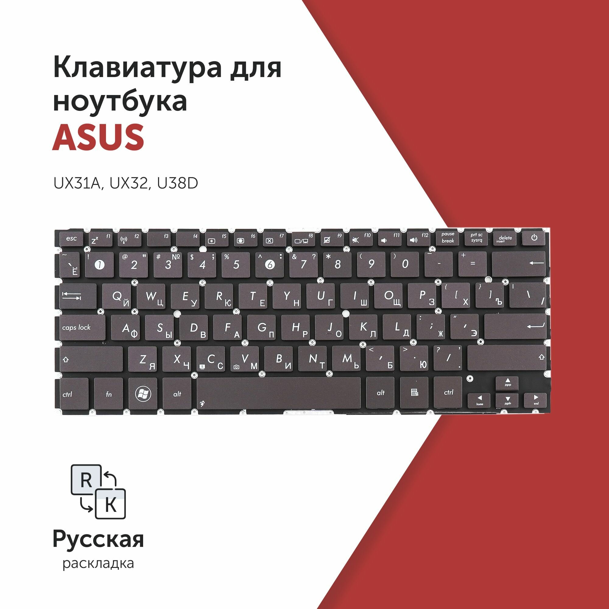 10 цен на Клавиатура для ноутбука Asus UX31A, UX32, U38D черная без рамки, без подсветки