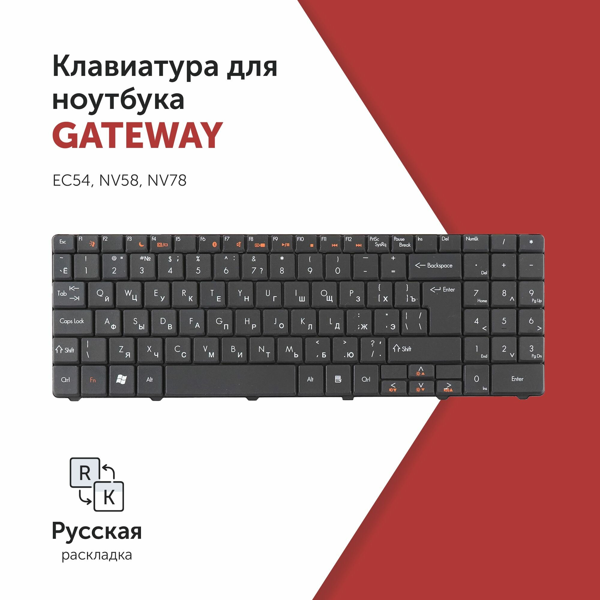 Клавиатура для ноутбука Gateway EC54, NV58, NV78, Packard Bell DT85, LJ61 черная, Г-образный Enter информация:
