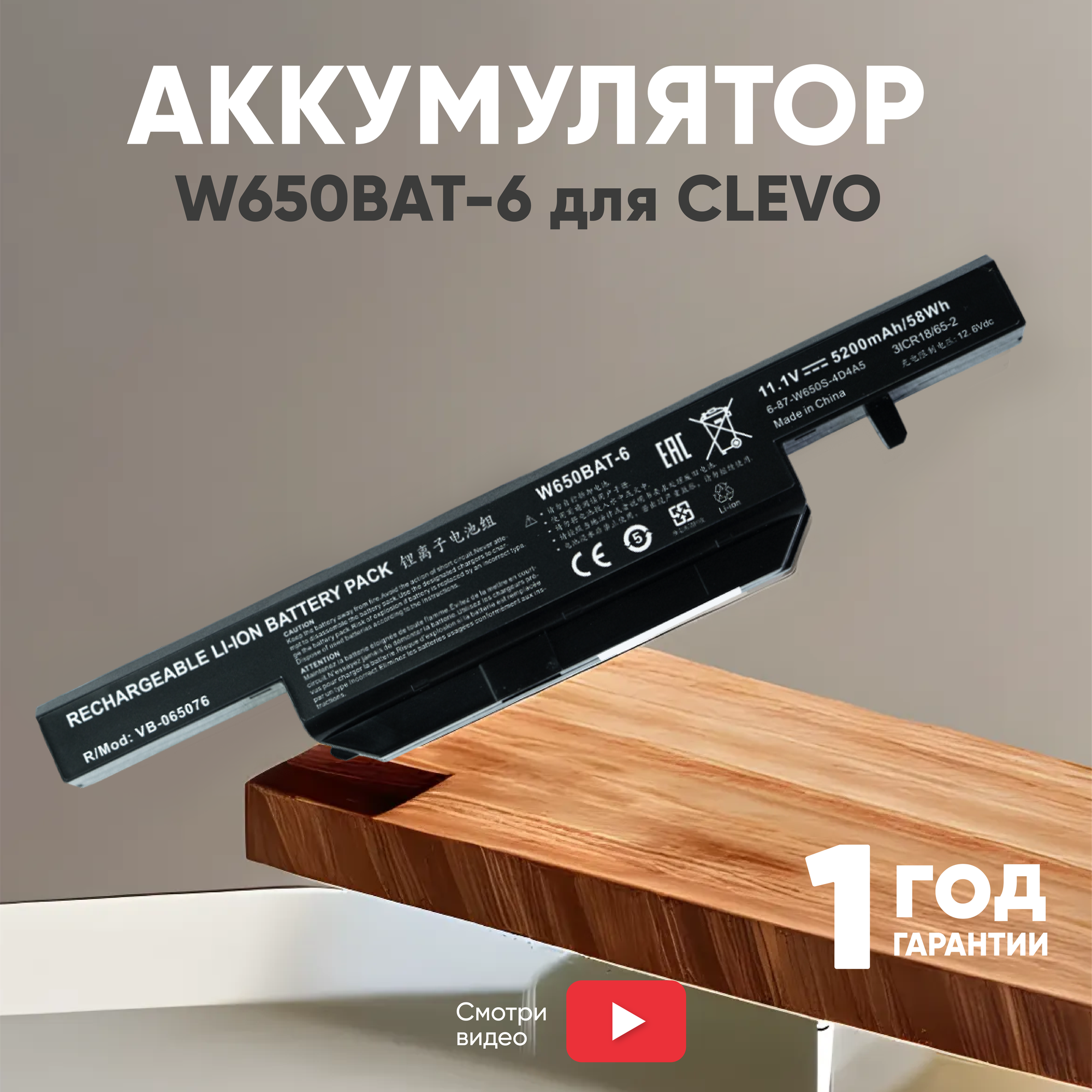 Отзывы на Аккумуляторная батарея 6-87-W650S-4D7A2 для ноутбука Clevo W650-3S2P, 11.1В, 5200мАч, черный