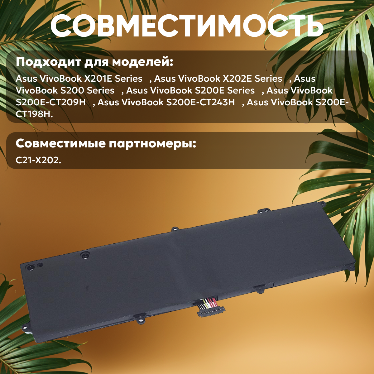 Аккумуляторная батарея C21-X202 для ноутбука Asus X202, 7.4В, 5000мАч, черный информация:
