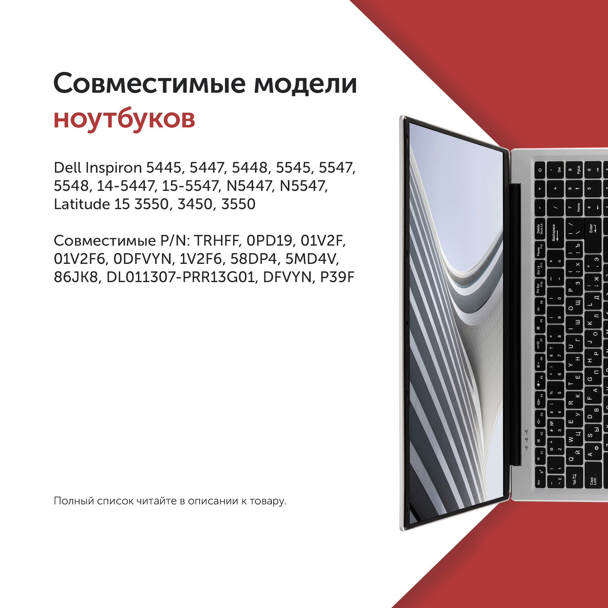 Аккумулятор TRHFF для ноутбука Dell Inspiron 5445 / 14-5447 / 15-5547 / Latitude 15 3550 (0PD19, 01V2F6) информация: