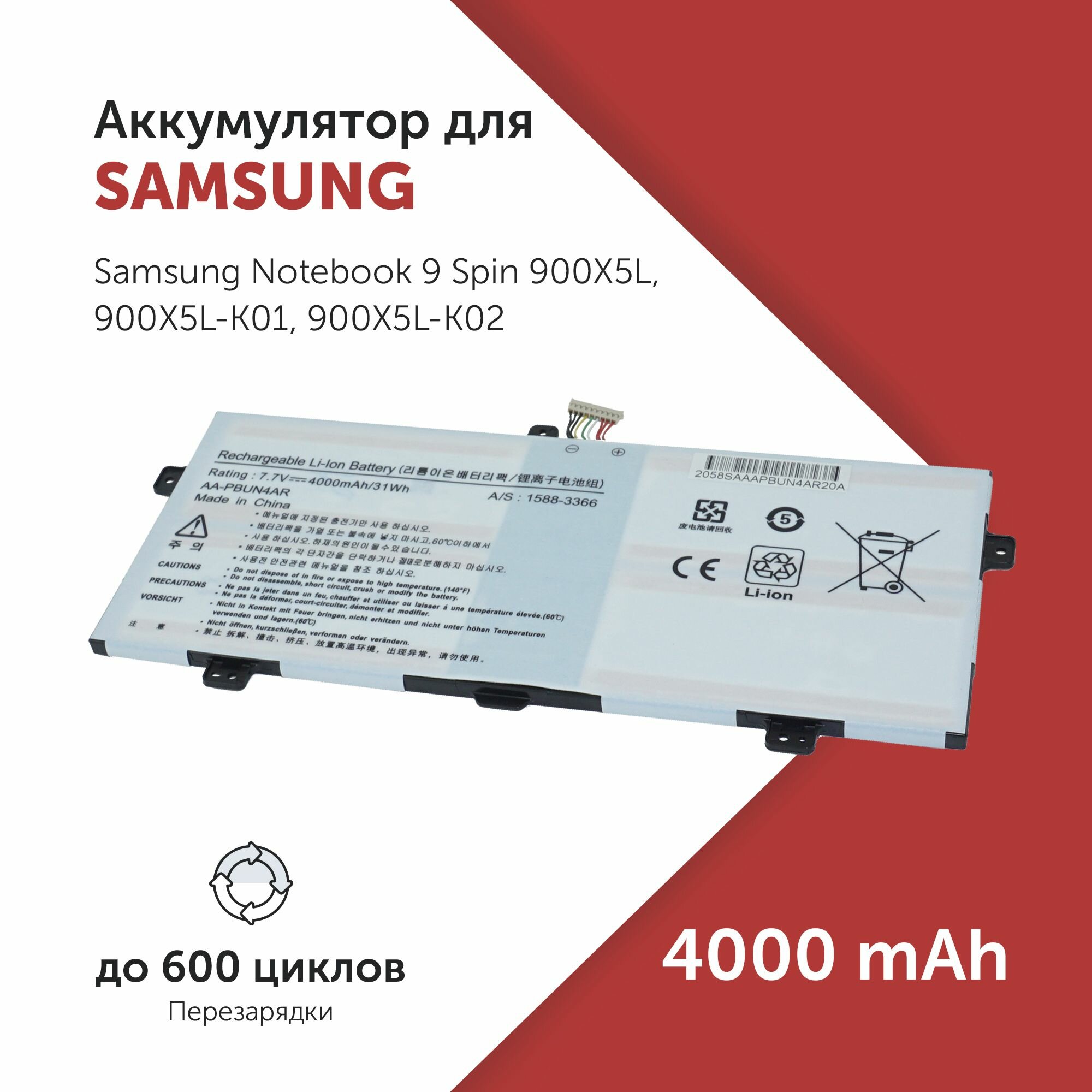 Аккумулятор AA-PBUN4AR для ноутбука Samsung Notebook 9 Spin 900X5L информация:
