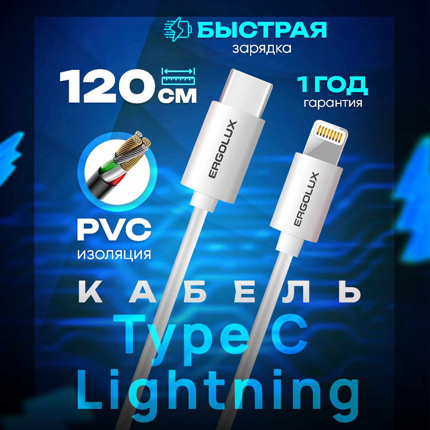 Кабель USB-Lightning ERGOLUX ELX-CDC03-C01 информация:
