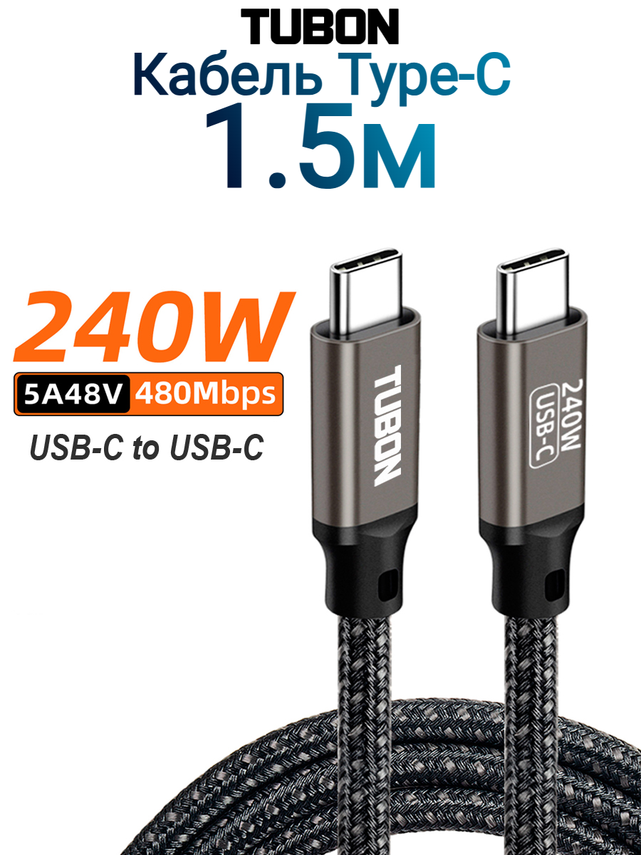 Отзывы на Кабель TUBON Type-C USBC - USBC 2.0 240W 5A48V 480Mbps US02 1.5м