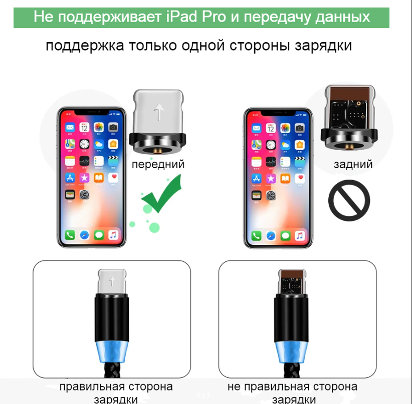 Отзывы на Магнитный USB-кабель 3 в 1 с тремя насадками Lightning, micro USB, Type C , серебристый