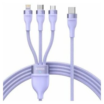 Кабель для быстрой зарядки Baseus One-for-Three Type-C to microUSB 18W/Lightning 20W/Type-C 100W, 1.5m, Пурпурный, CASS030205 информация: