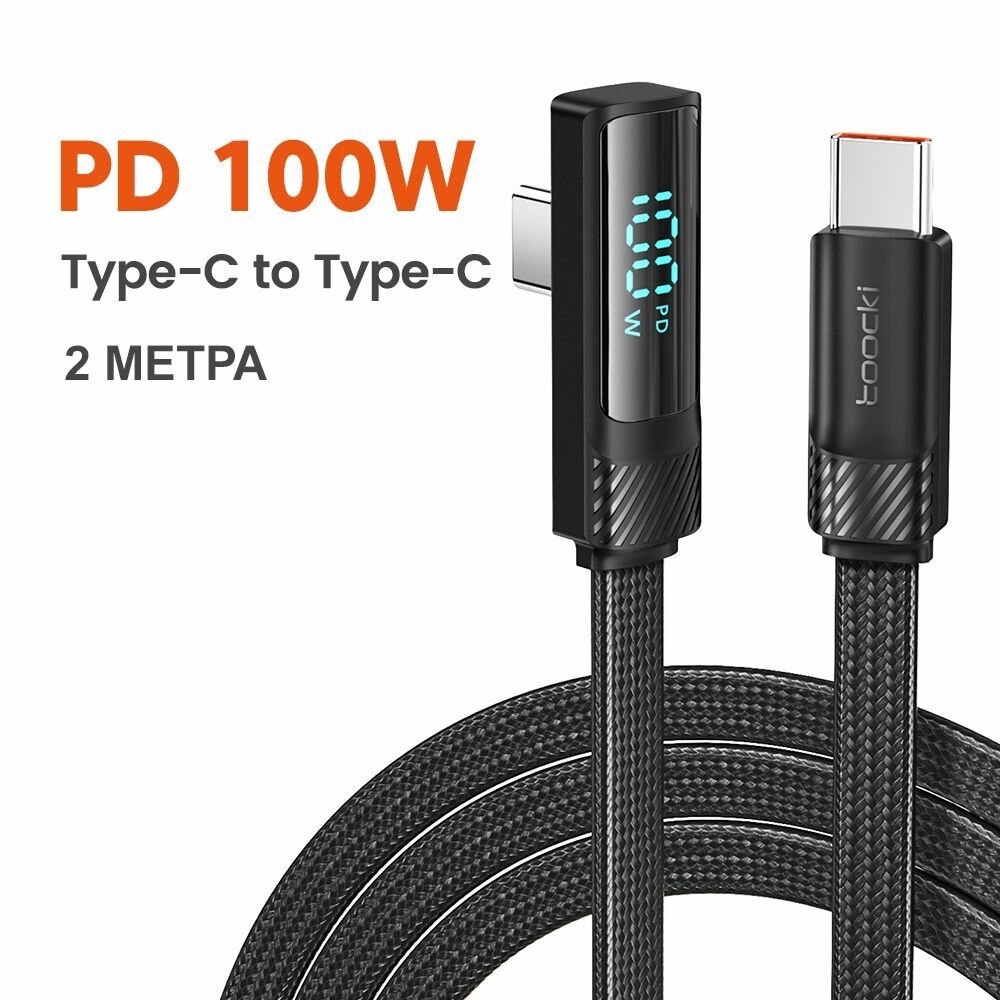 Кабель Type-Cна Type-C, Toocki, 100 Вт, угол 90, цифровой дисплей, быстрая зарядка TXCTT1-TQ05 информация: