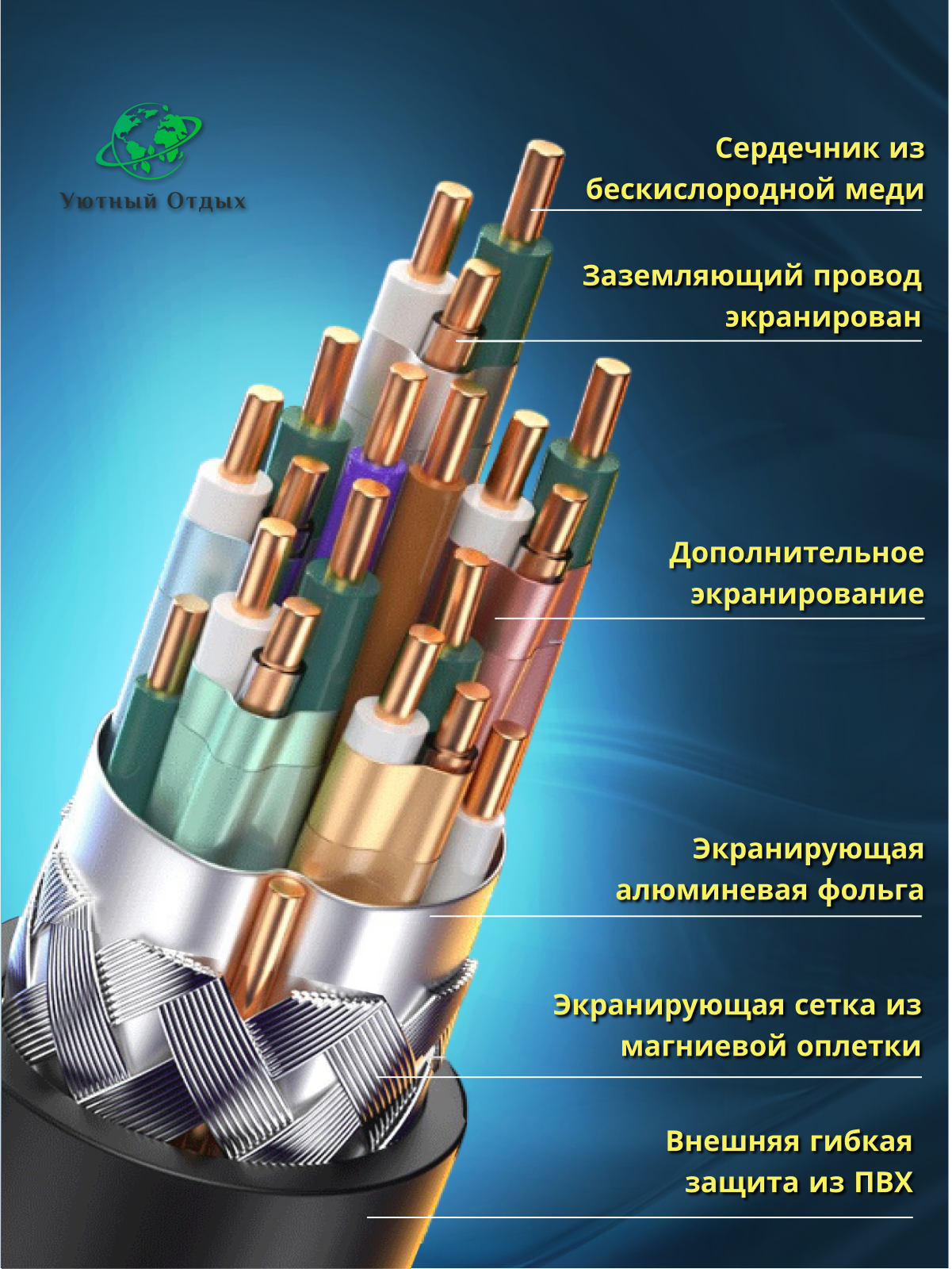Кабель HDMI 2.1 5 метров 8K 4k для монитора и телевизора, игровой шнур PS4 и PS5. Для ноутбука, компьютера, проектора 60Hz, 120 и 144 гц 1 350 ₽