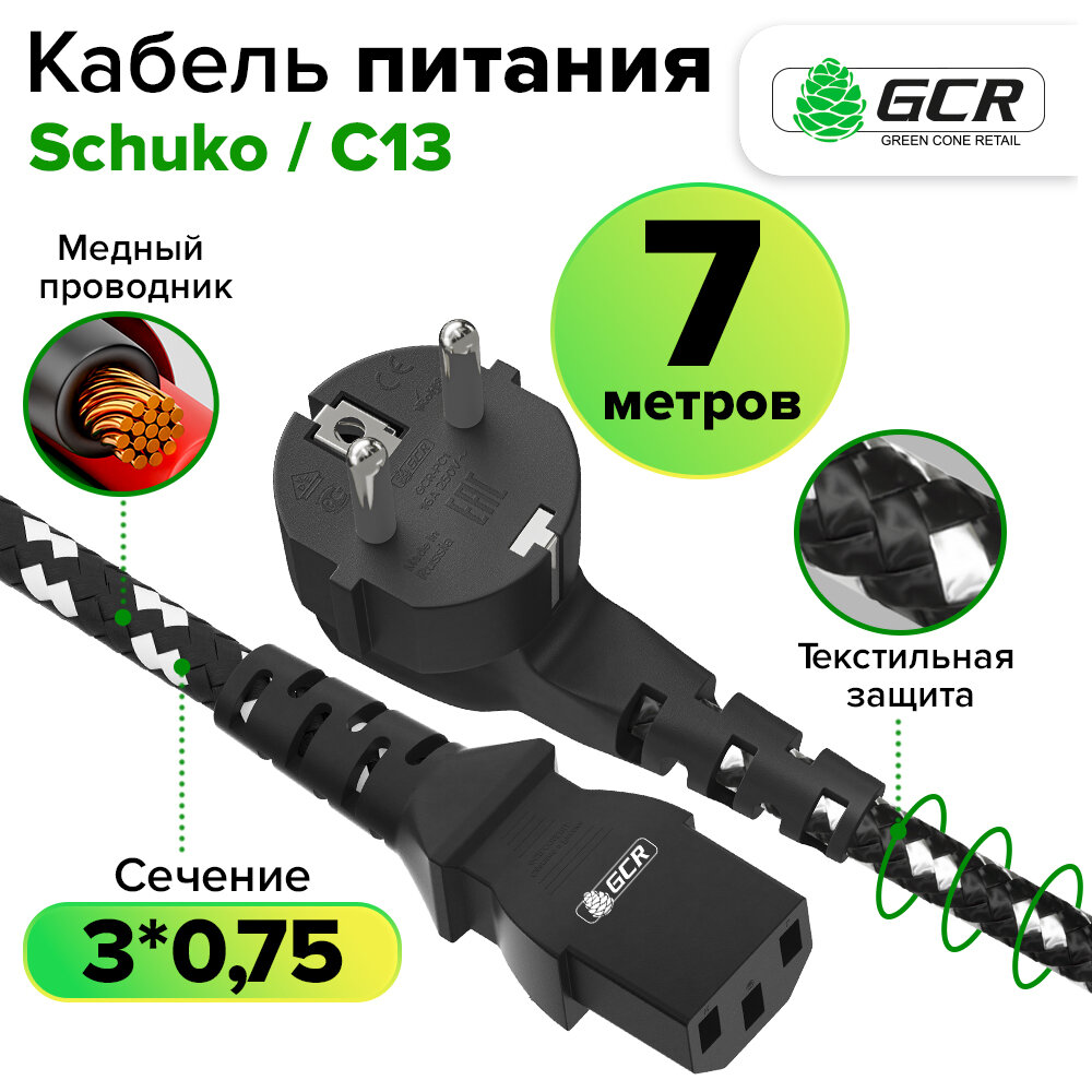 10 цен на Кабель питания евровилка Schuko С13 текстиль для монитора компьютера 3*0,75mm (GCR-PC2) черно-белый 7.0м